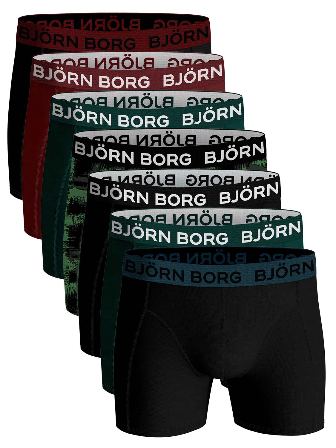 Estás cubierto todos los días de la semana con este multipack de 7 días de la serie Essential Cotton. Los calzoncillos Essential están hechos de algodón más ligero que los pantalones cortos de la serie Premium Cotton (Core), pero son extremadamente adecuados para el uso diario cuando no exiges demasiado a tu calzoncillo. Los calzoncillos están disponibles en varias combinaciones de colores y cuentan con una cintura elástica con el logotipo de Björn Borg.