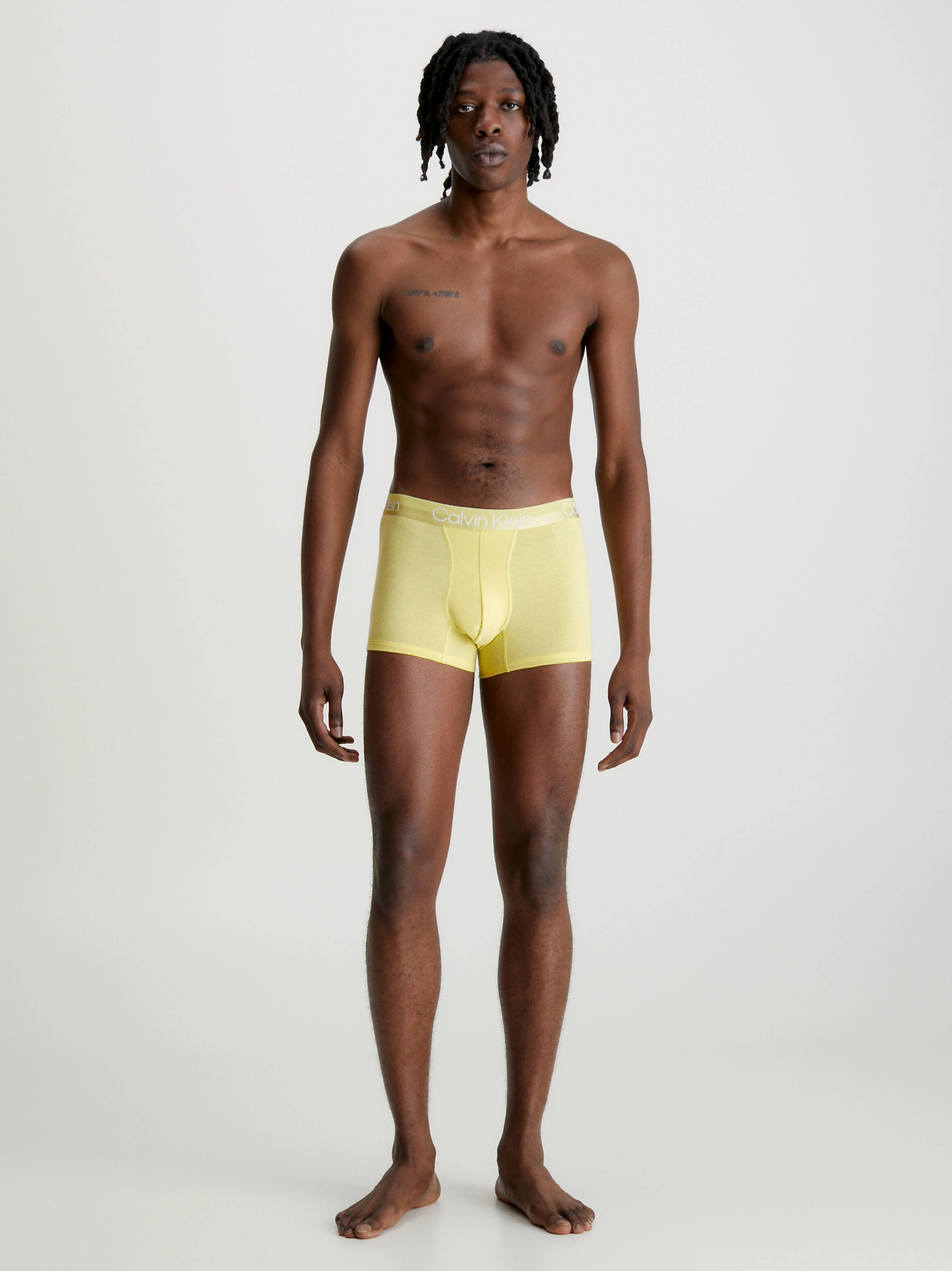 Los Modern Structure Trunks están hechos de una tela especial, una mezcla de algodón y poliéster reciclado, lo que hace que estos shorts sean más sostenibles que los shorts regulares. Ofrecen todo esto sin comprometer la comodidad. Gracias a la mezcla única de algodón y poliéster, los Modern Structure se sienten maravillosamente suaves y se asientan cómodamente contra la piel. Cuando usas los Modern Structure, experimentas una sensación de lujo. La cinturilla con el logo de Calvin Klein tiene un acabado mate moderno, completando el diseño. Los Modern Structure hacen honor a su nombre. Un multipack con 3 hermosos boxers de Calvin Klein.