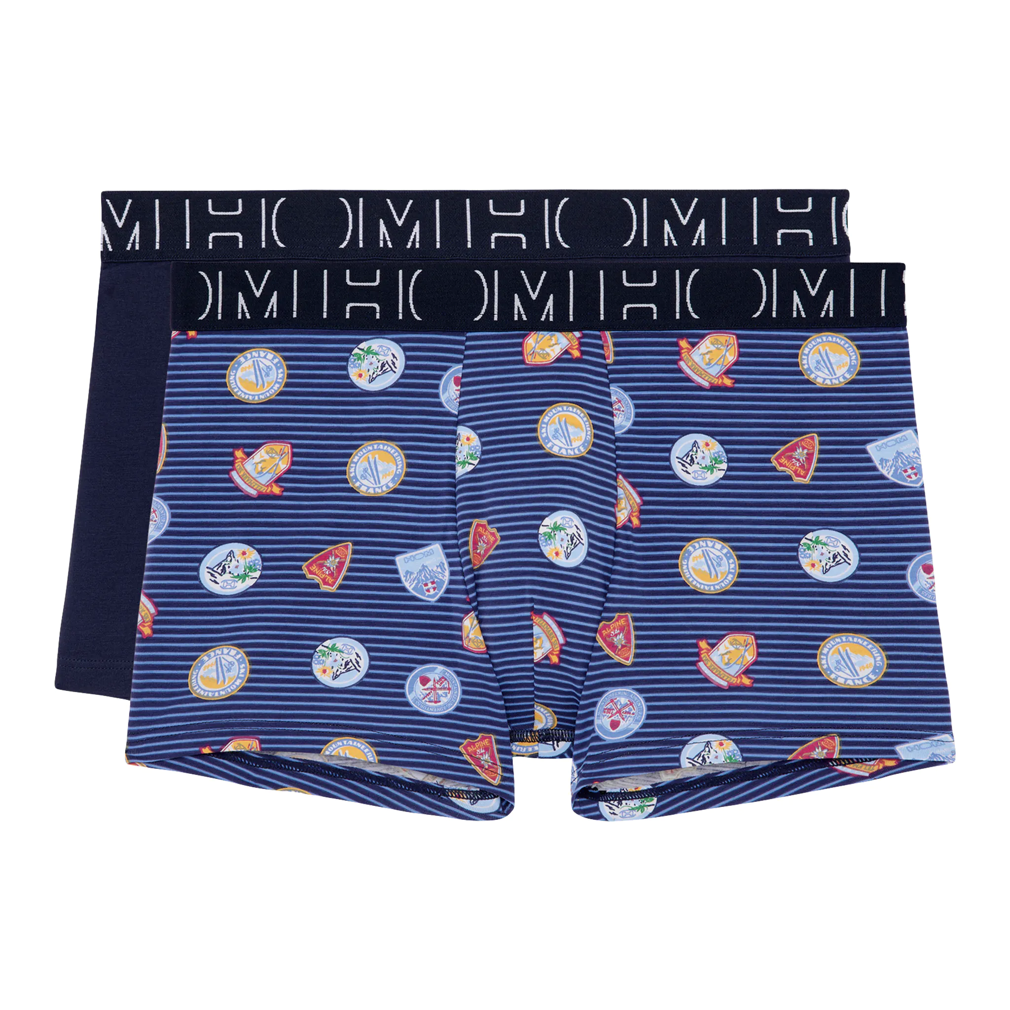 El 2p Boxer Briefs - Alf es un paquete económico de 2. Los bóxers son parte de la serie HOM BOXERLINES y están hechos de algodón peinado elástico. Estos bóxers para hombres son adecuados para el uso diario y cuentan con una bolsa en la parte delantera para mayor soporte y comodidad. La serie BOXERLINES está hecha de un algodón de calidad más ligera que los paquetes individuales. El Alf incluye un bóxer en color azul marino sólido y un bóxer con un estampado de emblemas de deportes de invierno.