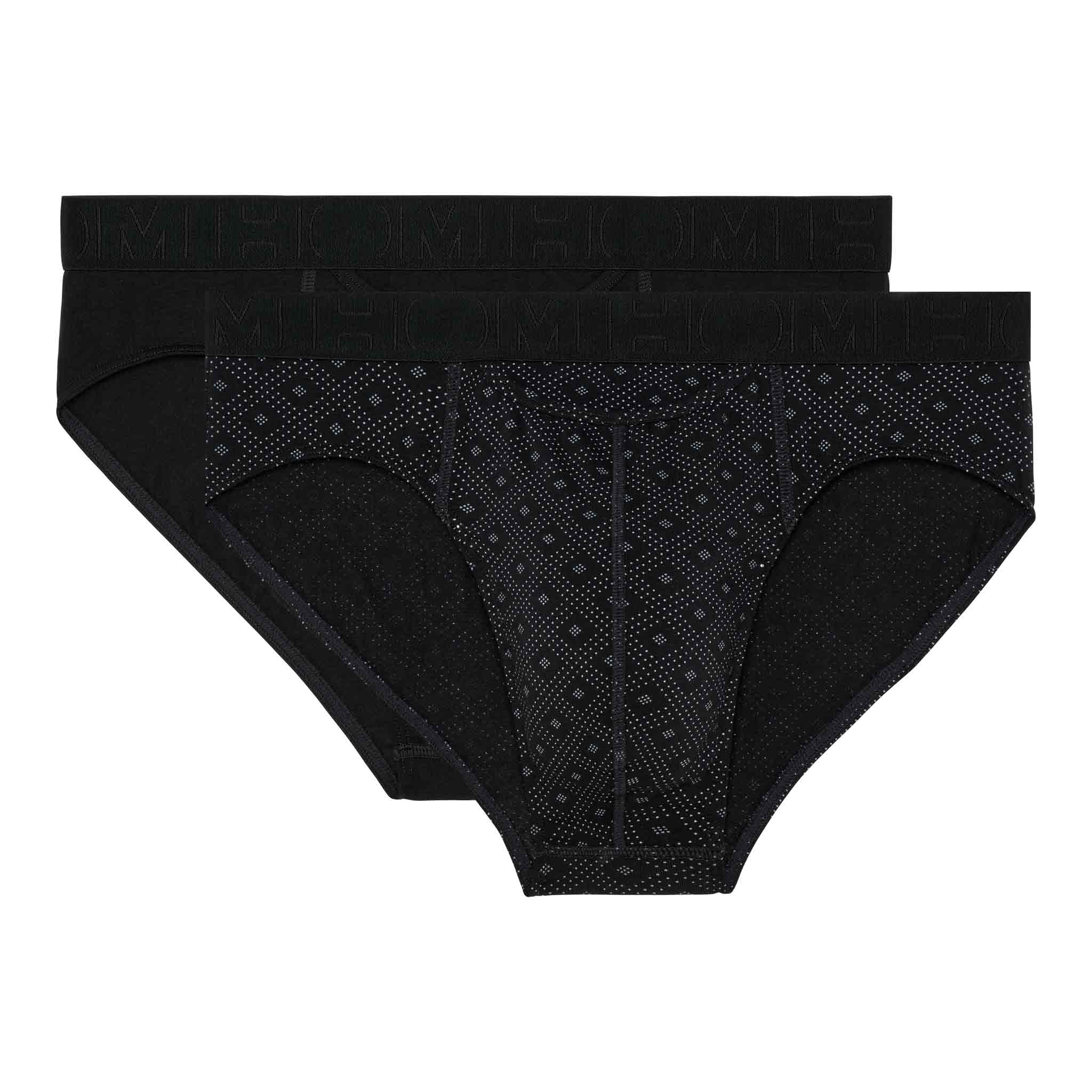 Incluye un slip negro liso y otro con un refinado microestampado de estilo corbata. La bolsa delantera está forrada para ofrecer mayor sujeción, y la cinturilla elástica lleva el discreto logotipo HOM en todo su contorno. Una opción ideal para quienes buscan combinar comodidad y estilo.