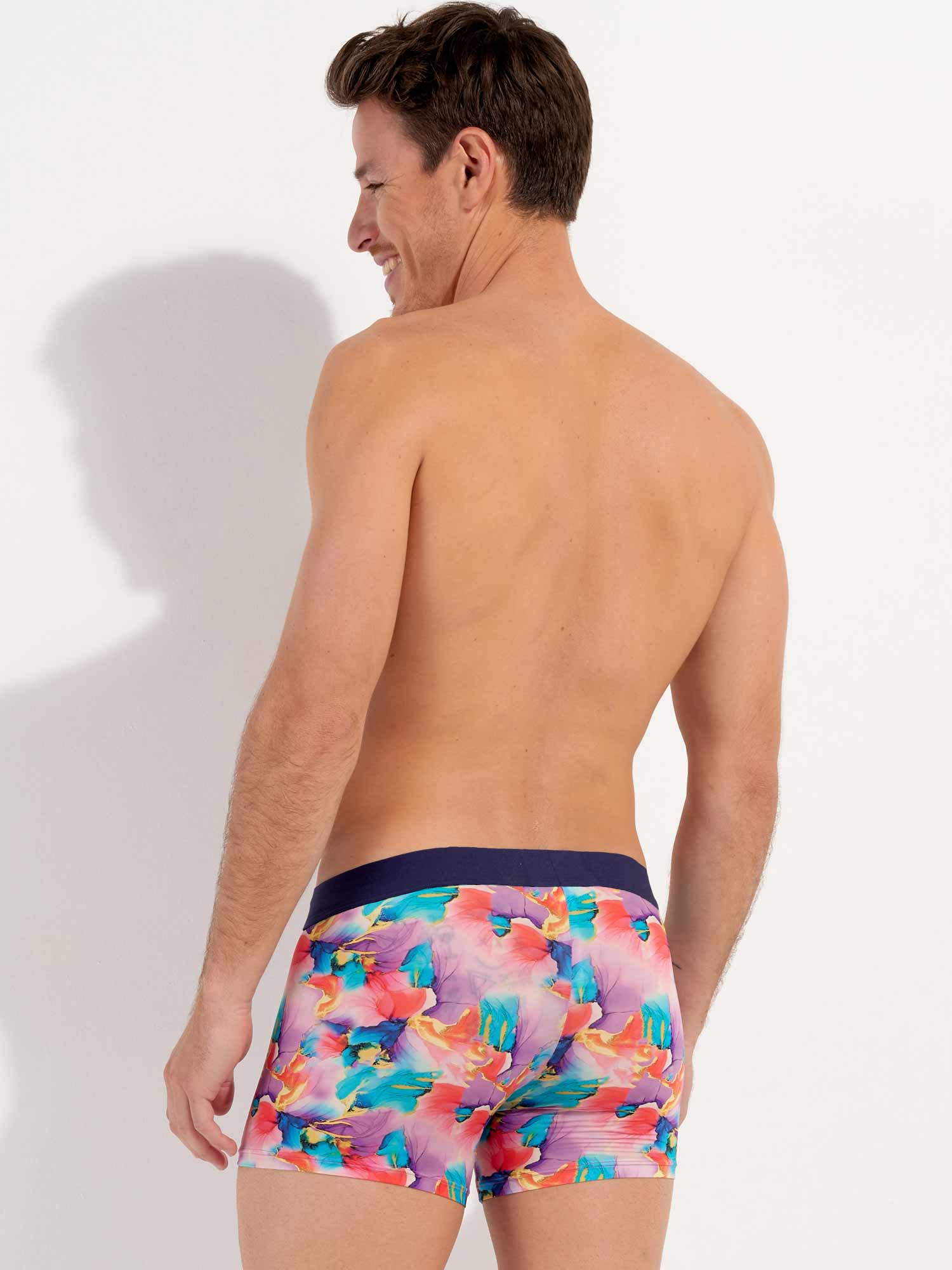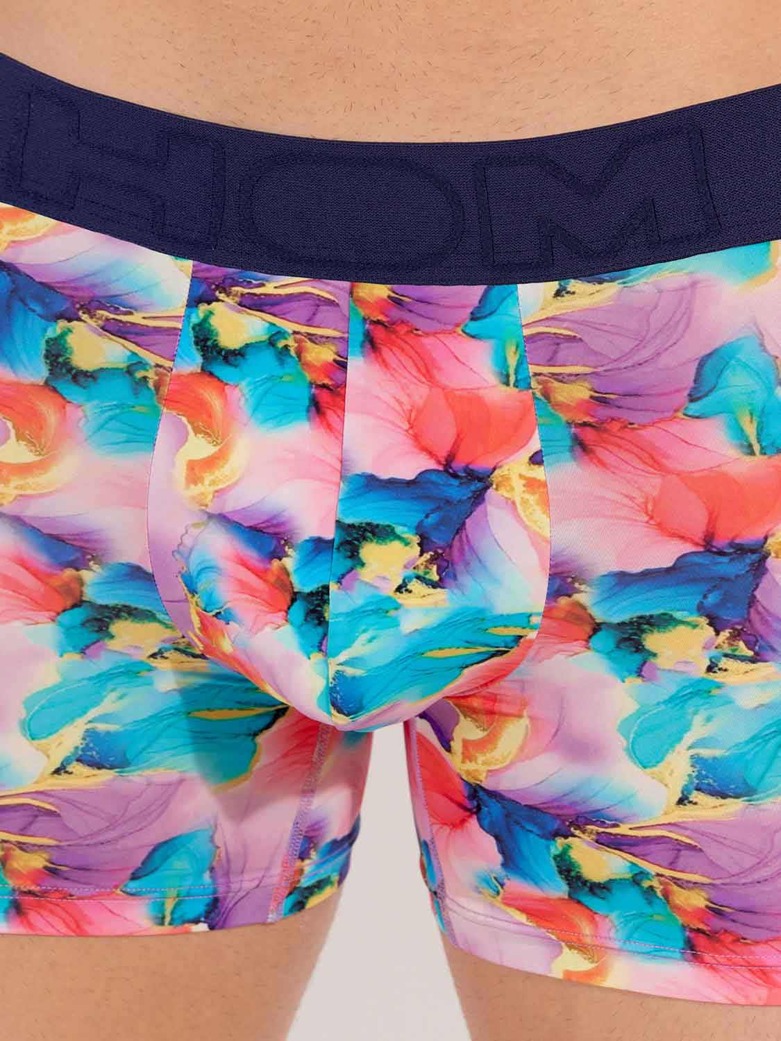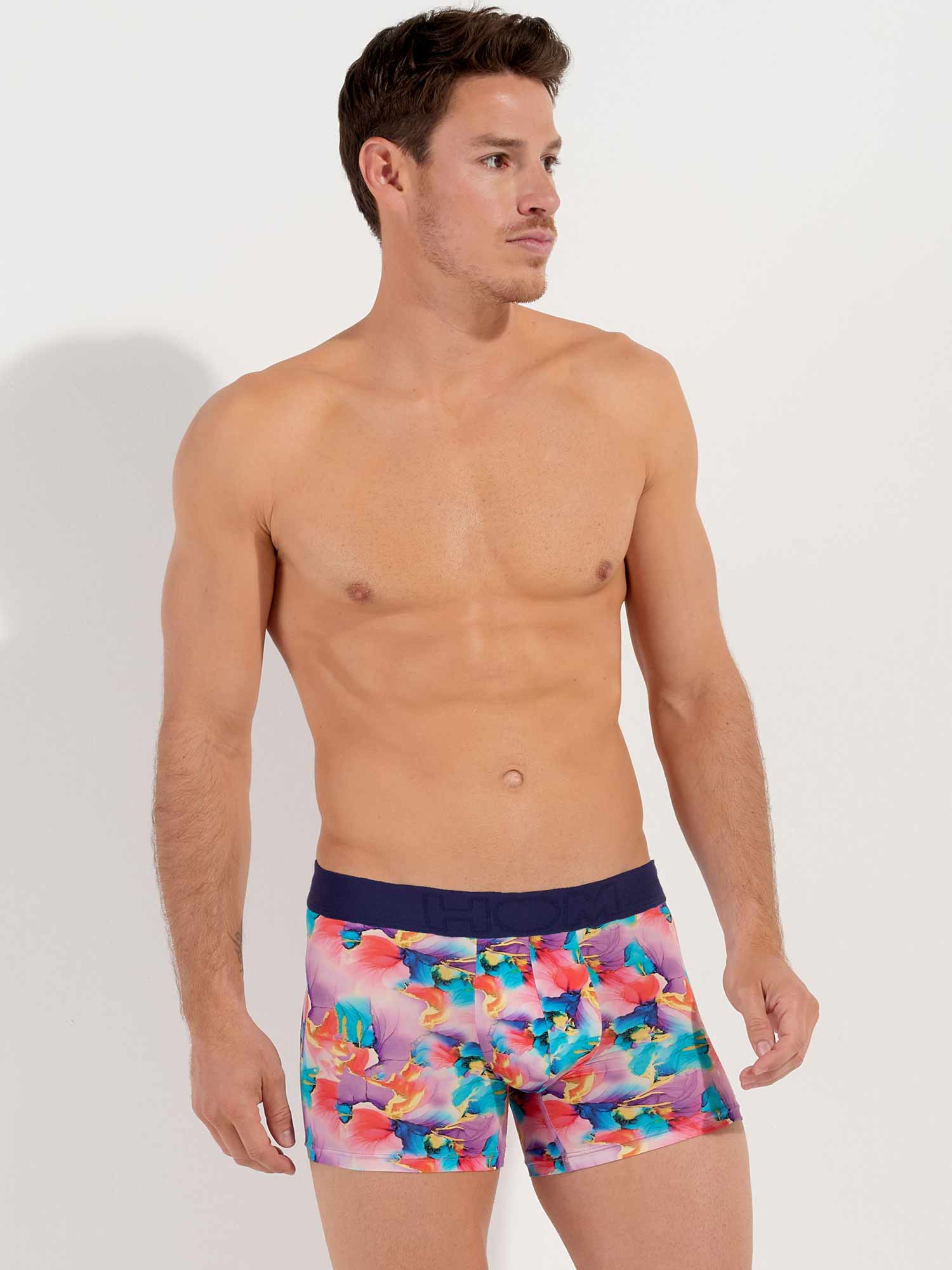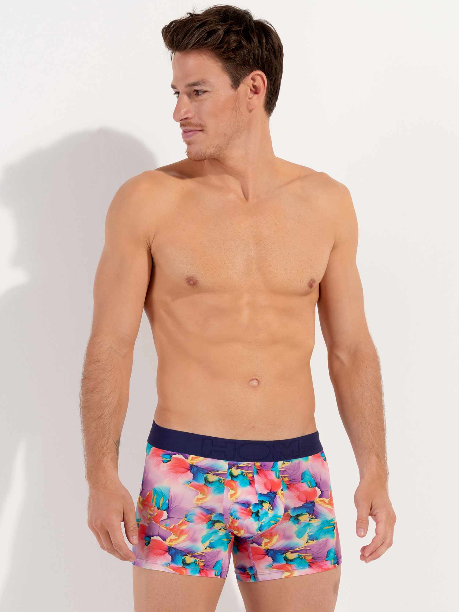 Los Aquaflowers - Boxer Briefs son una adición colorida a la línea Temptation. Los boxers están hechos de un tejido de microfibra delgado (similar al plumes), lo que garantiza un ajuste cómodo como una segunda piel. A diferencia de los trunks que usualmente se ven en la línea HOM Temptation, los Aquaflowers son un modelo de boxer brief con piernas más largas y una banda ancha en la cintura. El estampado en tonos pastel suaves como turquesa y rosa evoca una sensación de suavidad y sensualidad. Comienza el juego de la seducción con esta impresionante nueva incorporación a la línea Temptation.