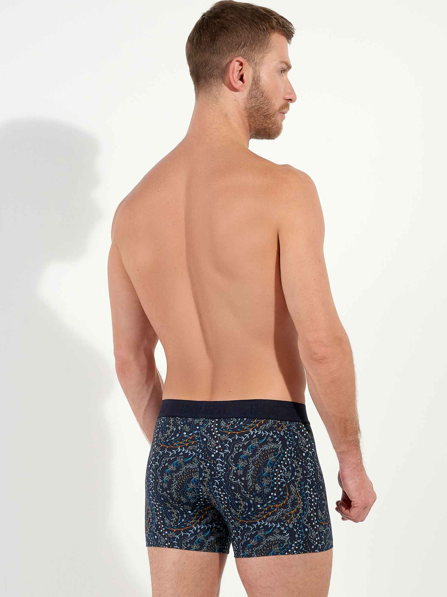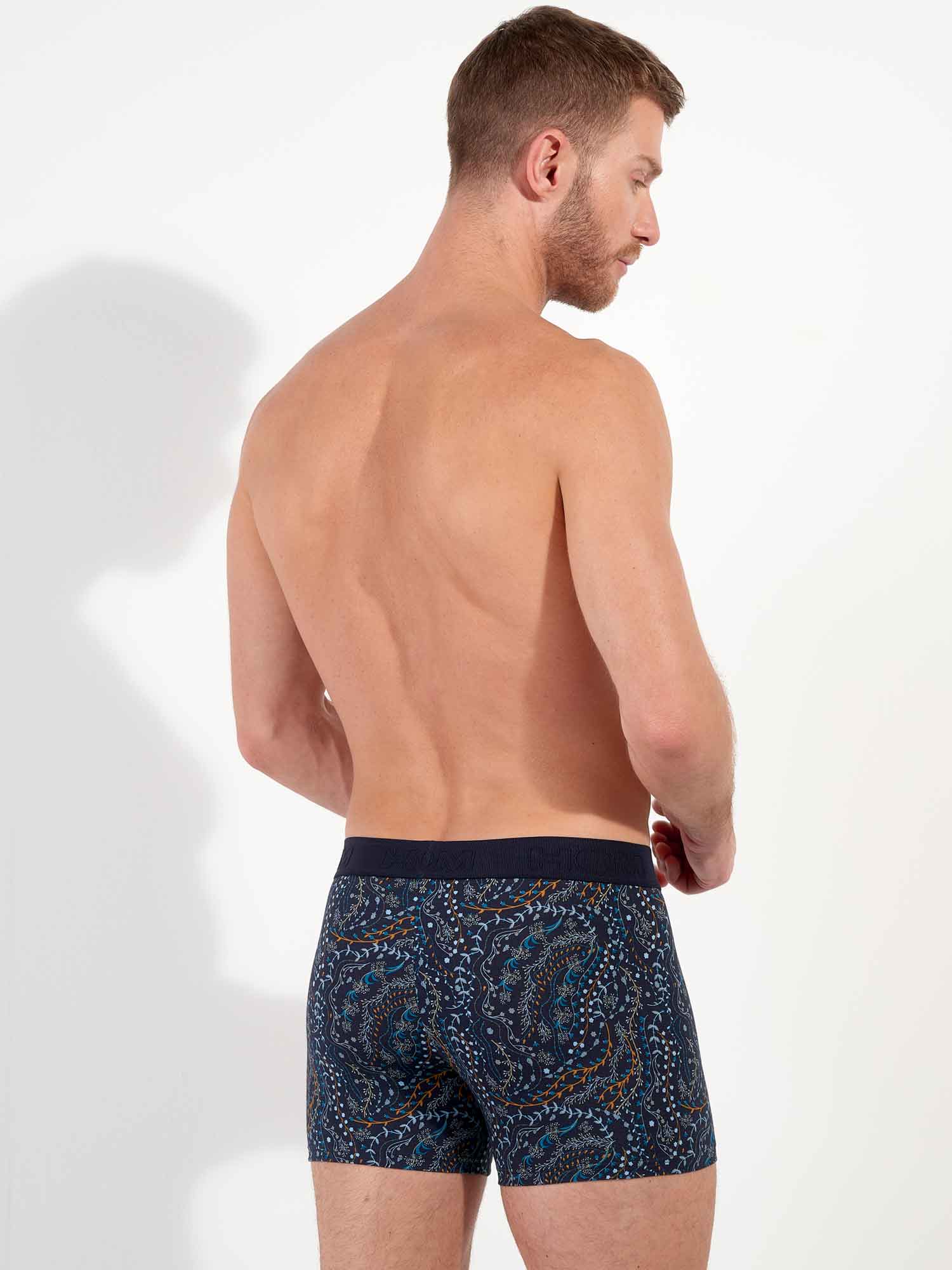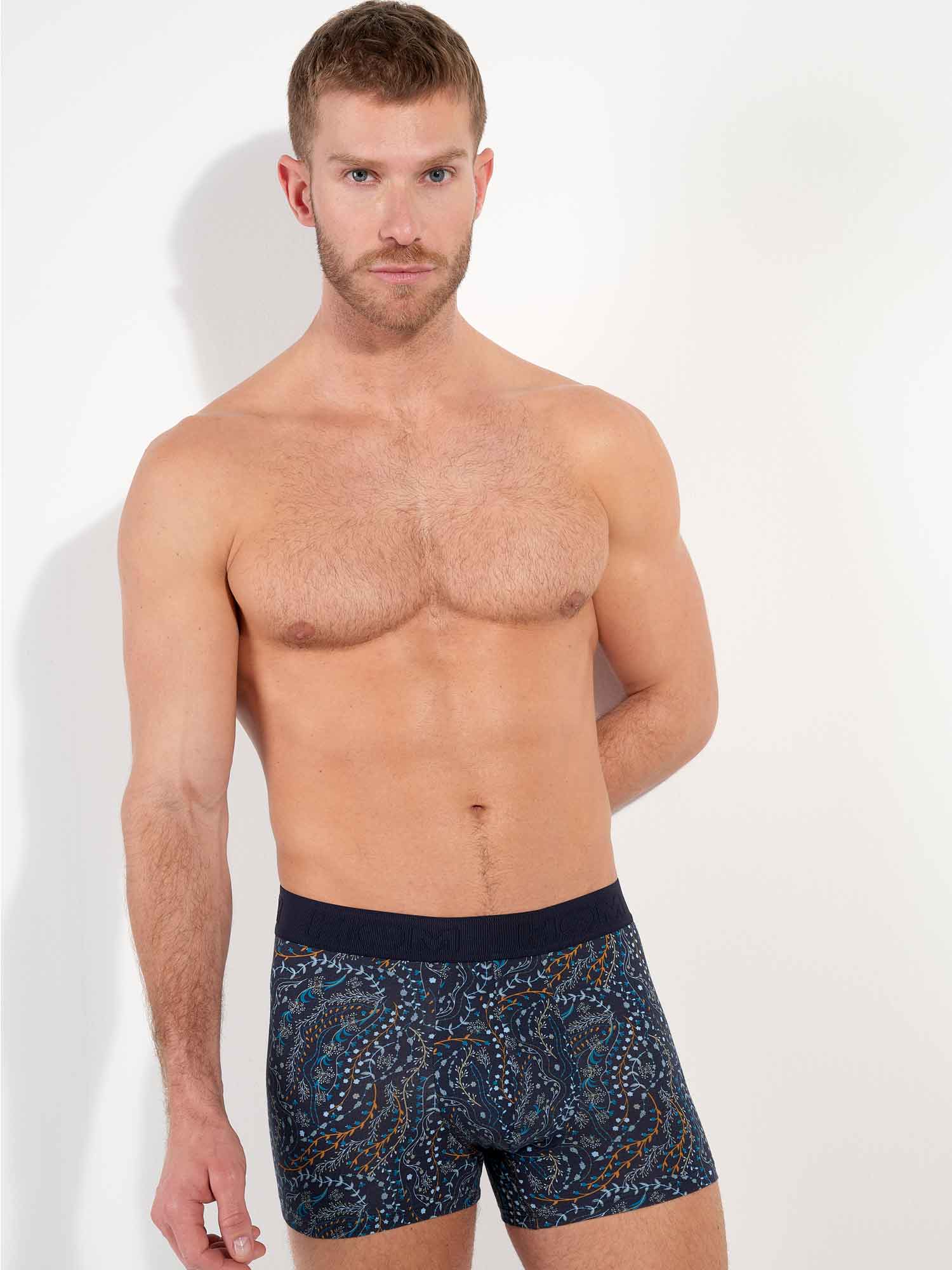 Los Fontainebleau boxer briefs combinan un ajuste cómodo con una estética natural y elegante. El diseño botánico con ramas y hojas sobre un fondo azul marino profundo aporta un toque estacional sutil sin perder sofisticación. El tejido transpirable de modal y algodón y el suave forro frontal garantizan comodidad durante todo el día.
