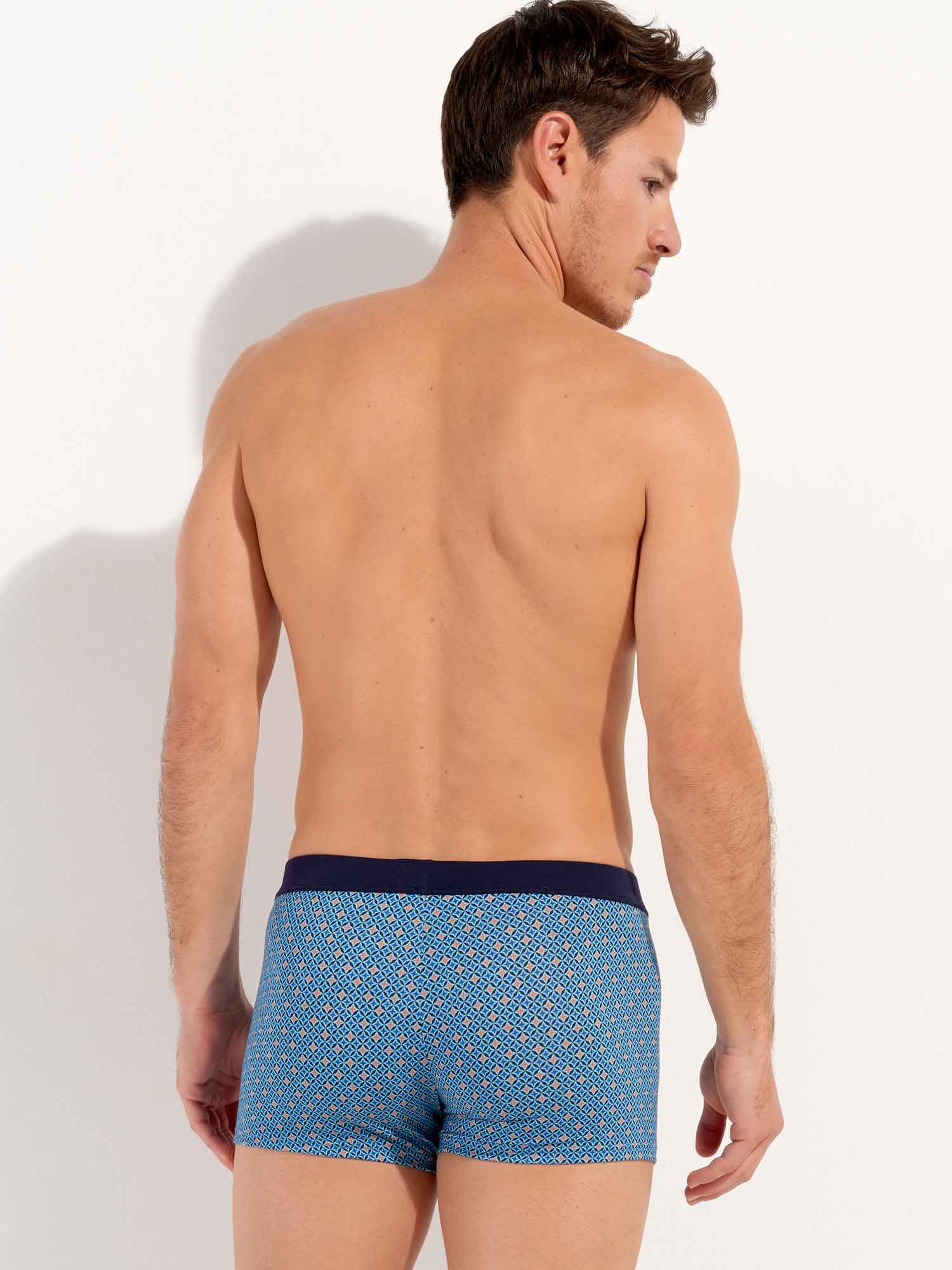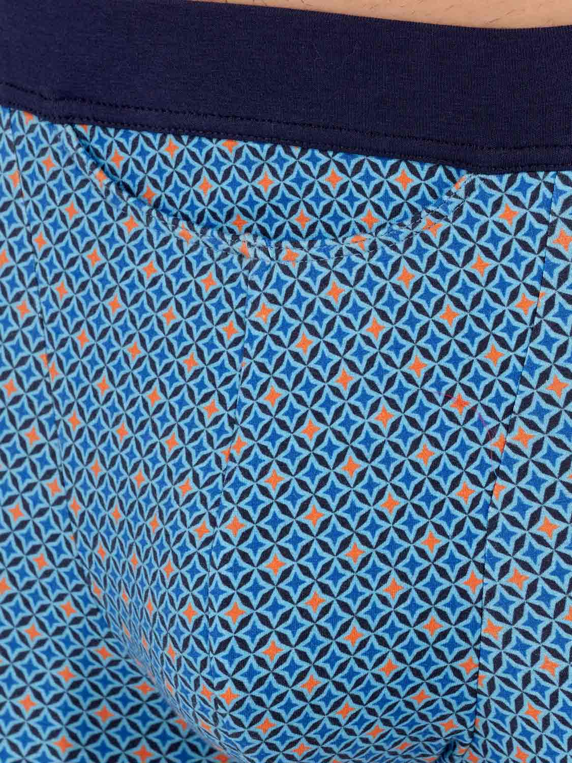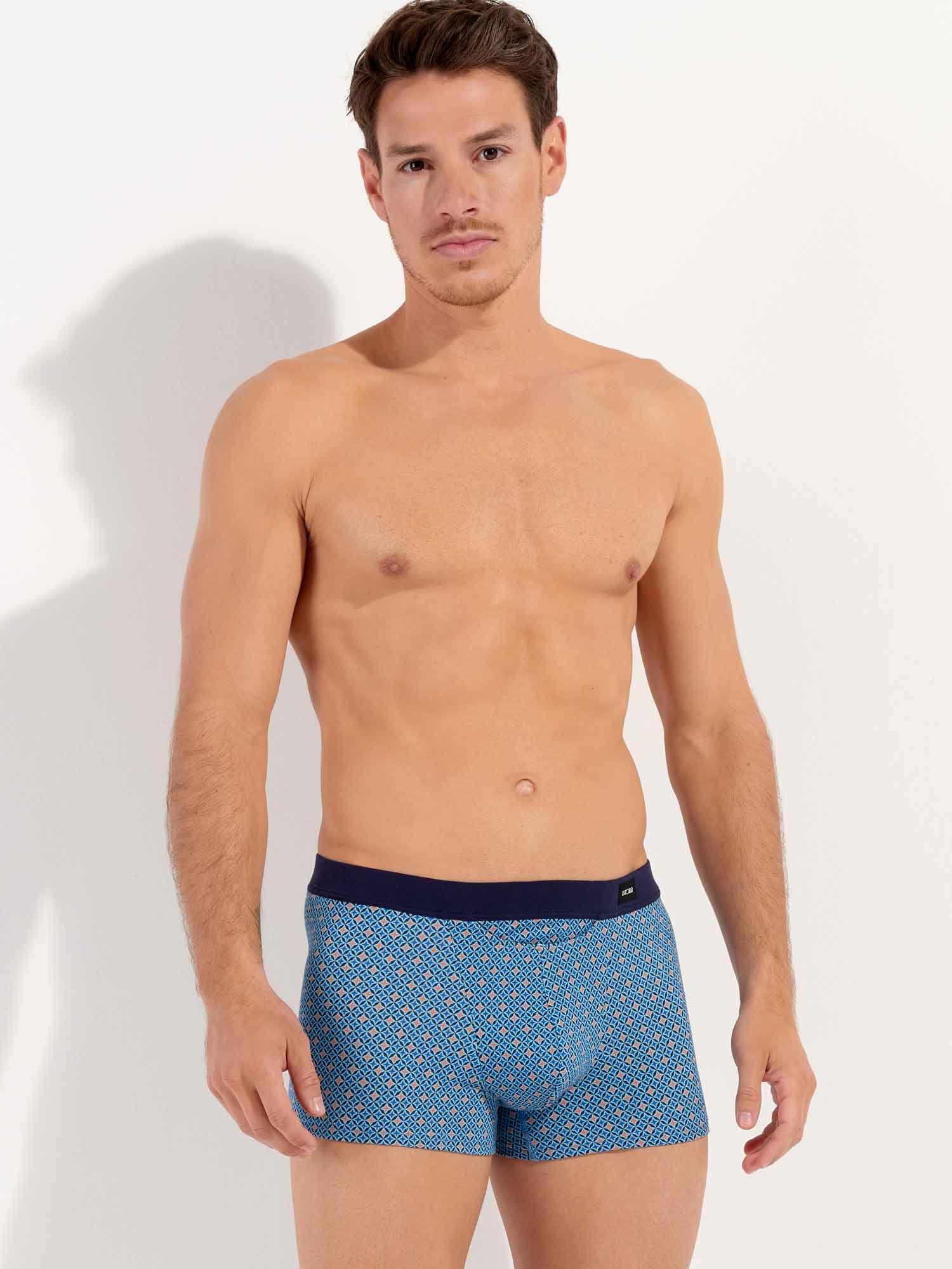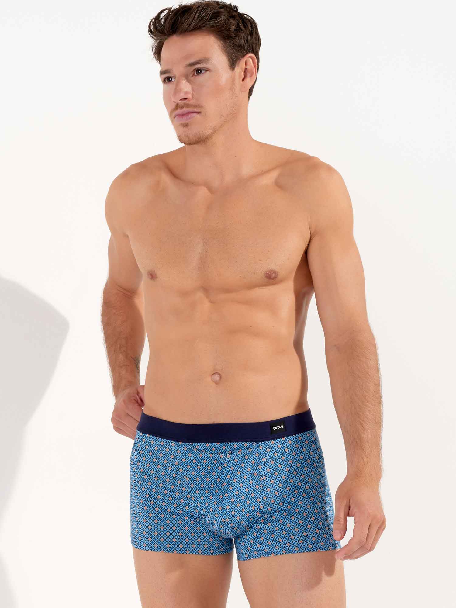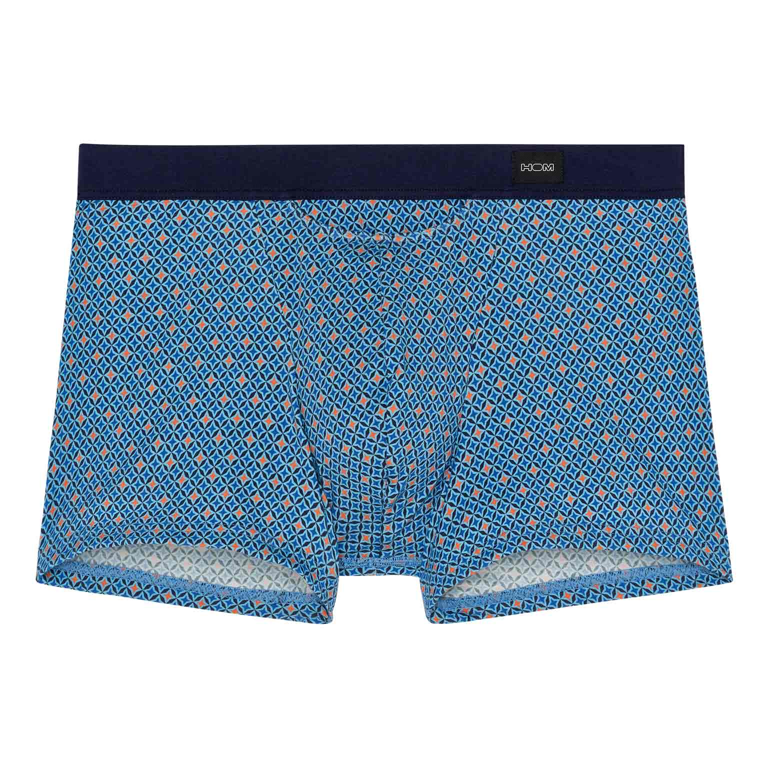 Los Stars - HO1 Comfort Boxer Briefs están hechos de algodón-modal y cuentan con la 'apertura horizontal', la característica bragueta de HOM para mayor comodidad. Los Stars boxers presentan un diseño contemporáneo con estrellas azules y naranjas. Están diseñados con una cintura de confort, donde la tela se pliega sobre la banda elástica en el interior para un ajuste aún más cómodo. En la parte delantera izquierda de la cintura se encuentra una pequeña etiqueta con el logo de HOM.