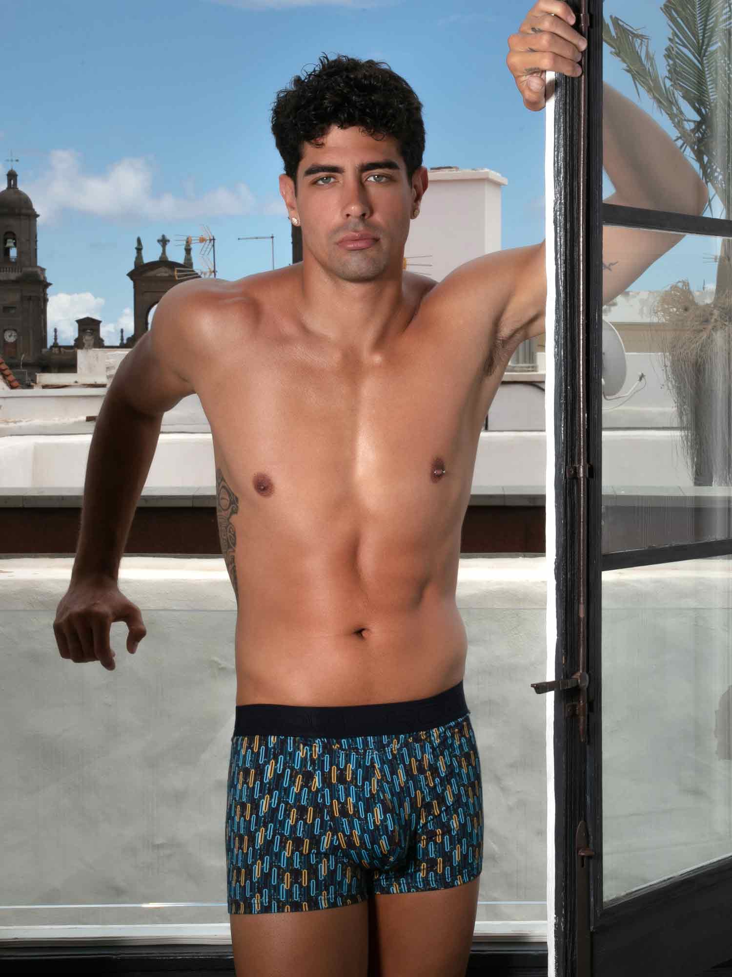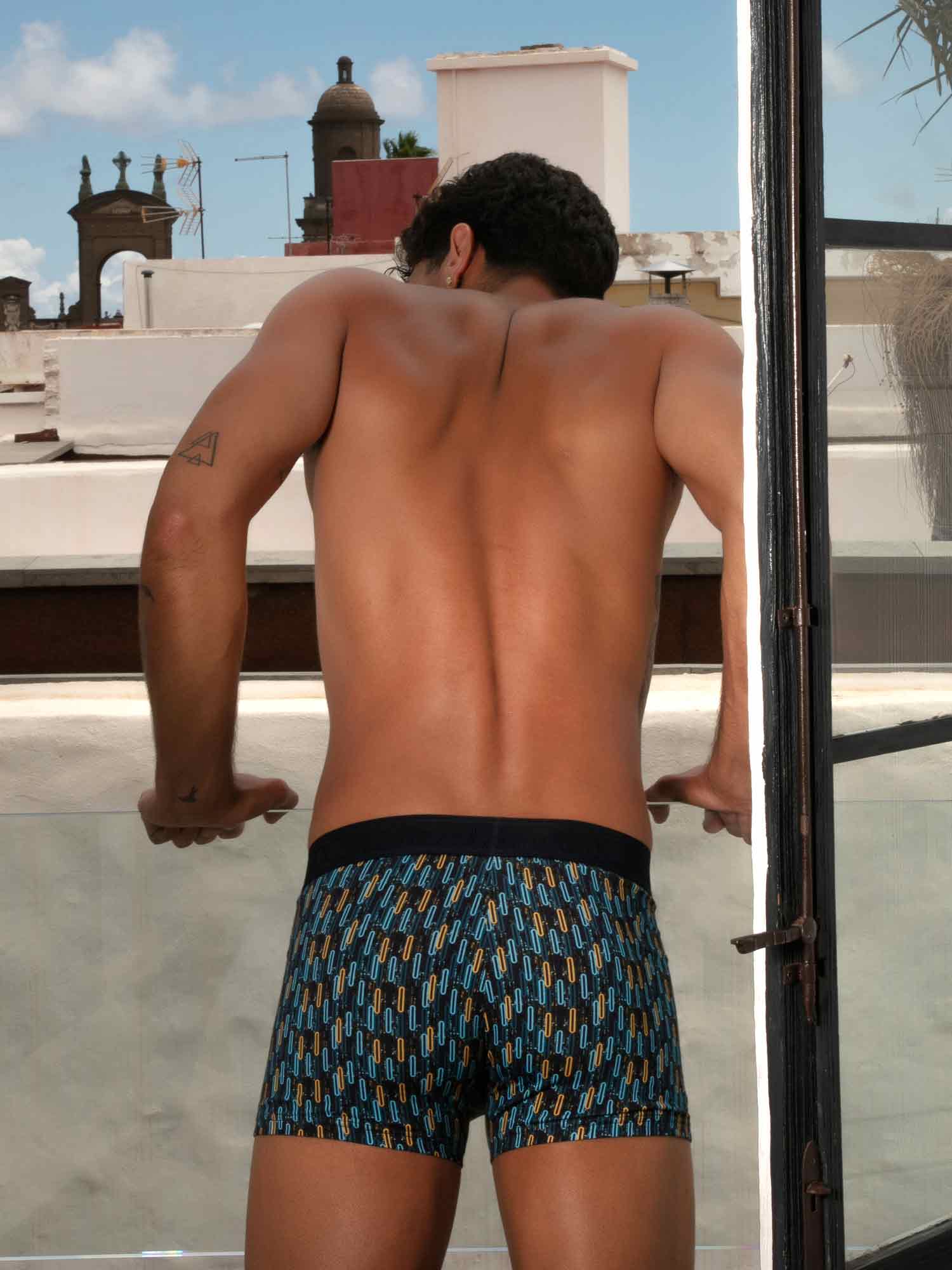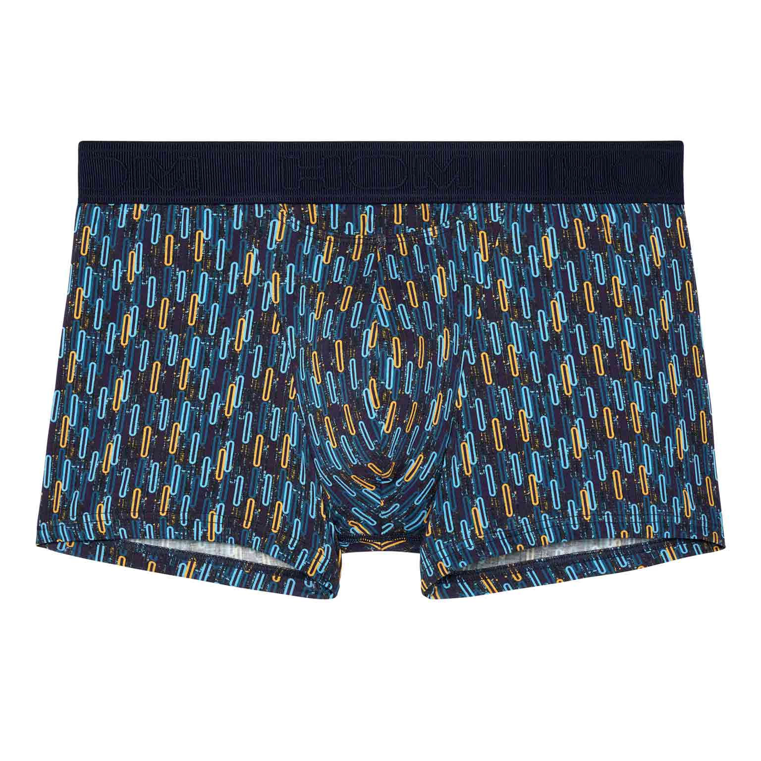 Los HOM Westgate boxer briefs HO1 celebran la audacia visual con un estampado retro inspirado en el Las Vegas de los años 50. Los motivos ovalados en azul y amarillo, sobre un fondo navy, evocan el modernismo americano y el arte geométrico de la época. Su mezcla de algodón, modal y elastano de alta calidad se siente suave y flexible, a la vez que resistente para el día a día. La apertura HO1 patentada, también conocida como fly horizontal, ofrece un confort ergonómico y un acceso fácil tanto para diestros como para zurdos. Un refuerzo elástico discreto en la parte frontal asegura un ajuste natural y preciso, mientras que el panel anti-deslizamiento en el bajo de la pierna ayuda a evitar que se suba durante el día. Rematados con cintura con logo HOM, un básico atrevido con comodidad premium.