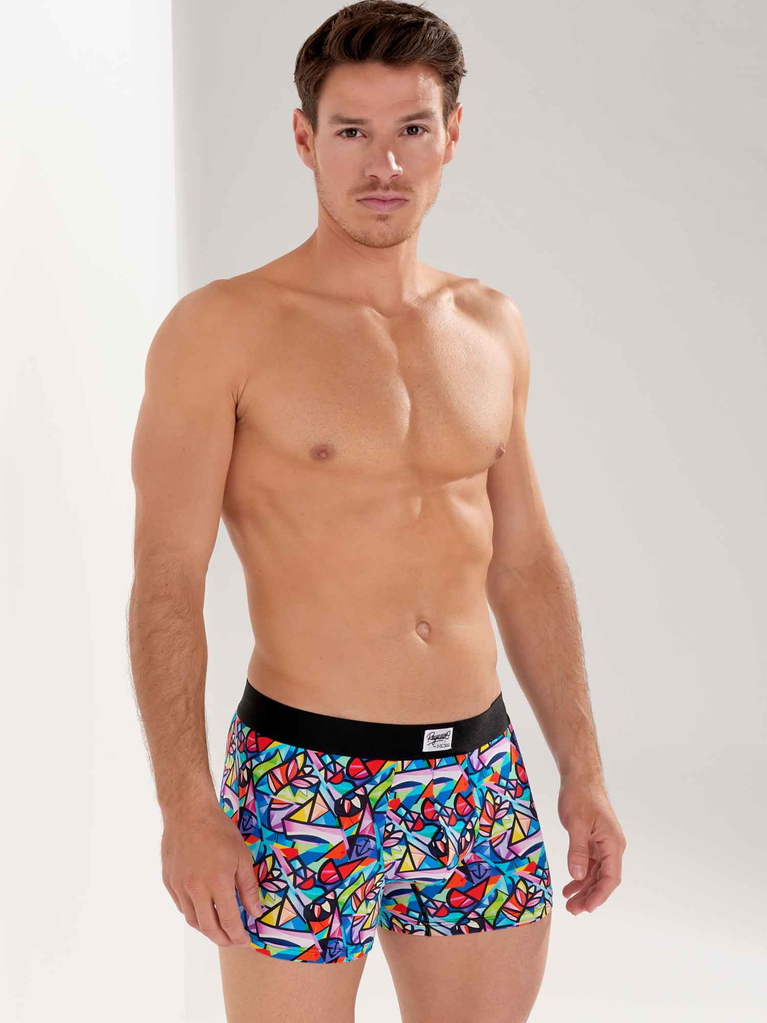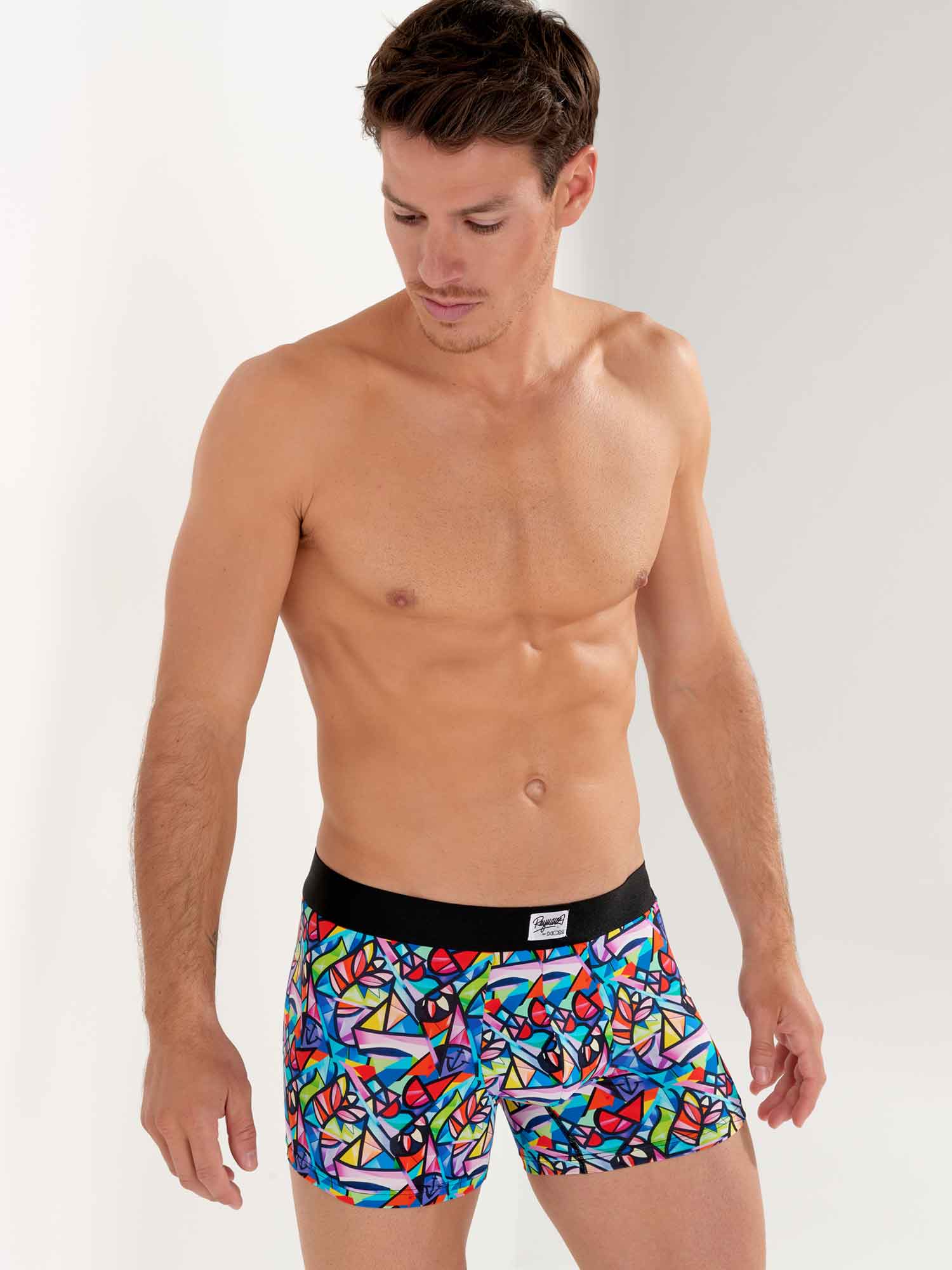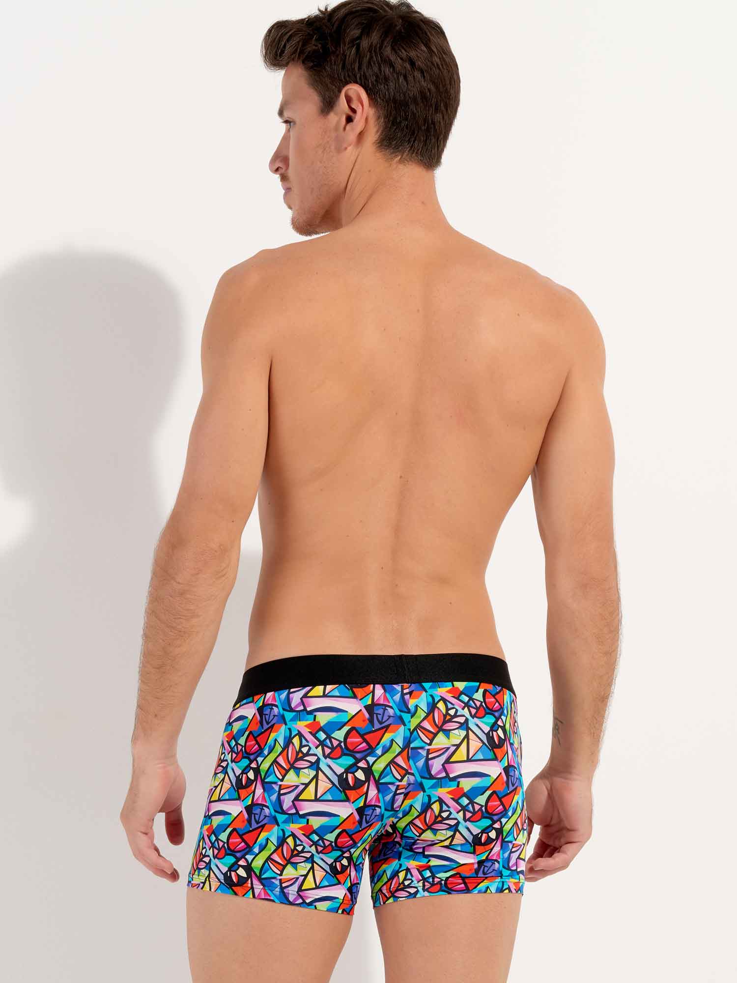 El Idylle - Boxer Briefs es uno de los dos diseños del diseñador invitado Julien Raynaud. Esta edición especial está hecha de una cómoda microfibra. El diseño de estos boxers únicos presenta un fresco vibrante y colorido que combina el cubismo con el arte figurativo. La cintura elástica está hecha de algodón negro con un logotipo único y la firma de Julien Raynaud.