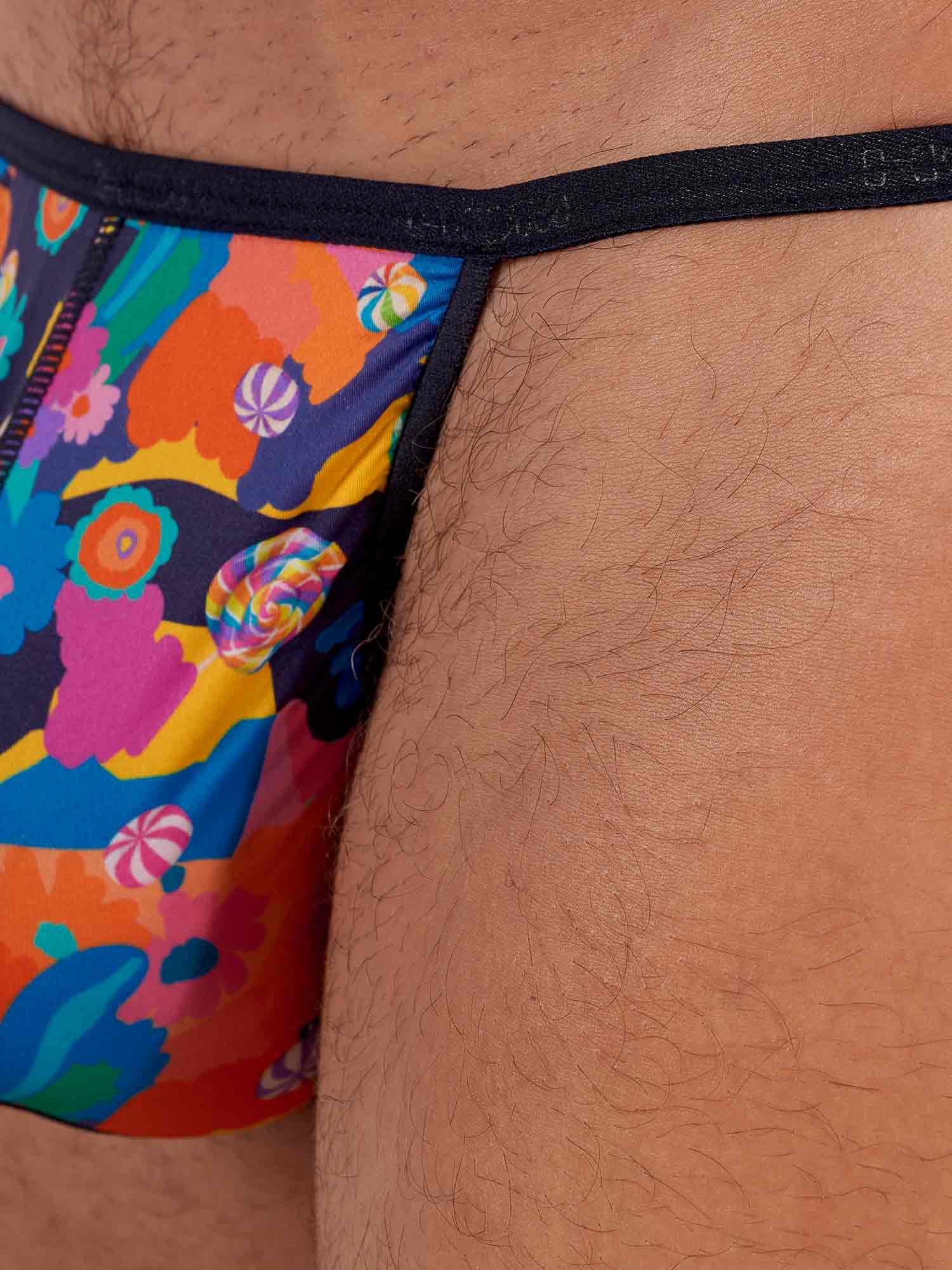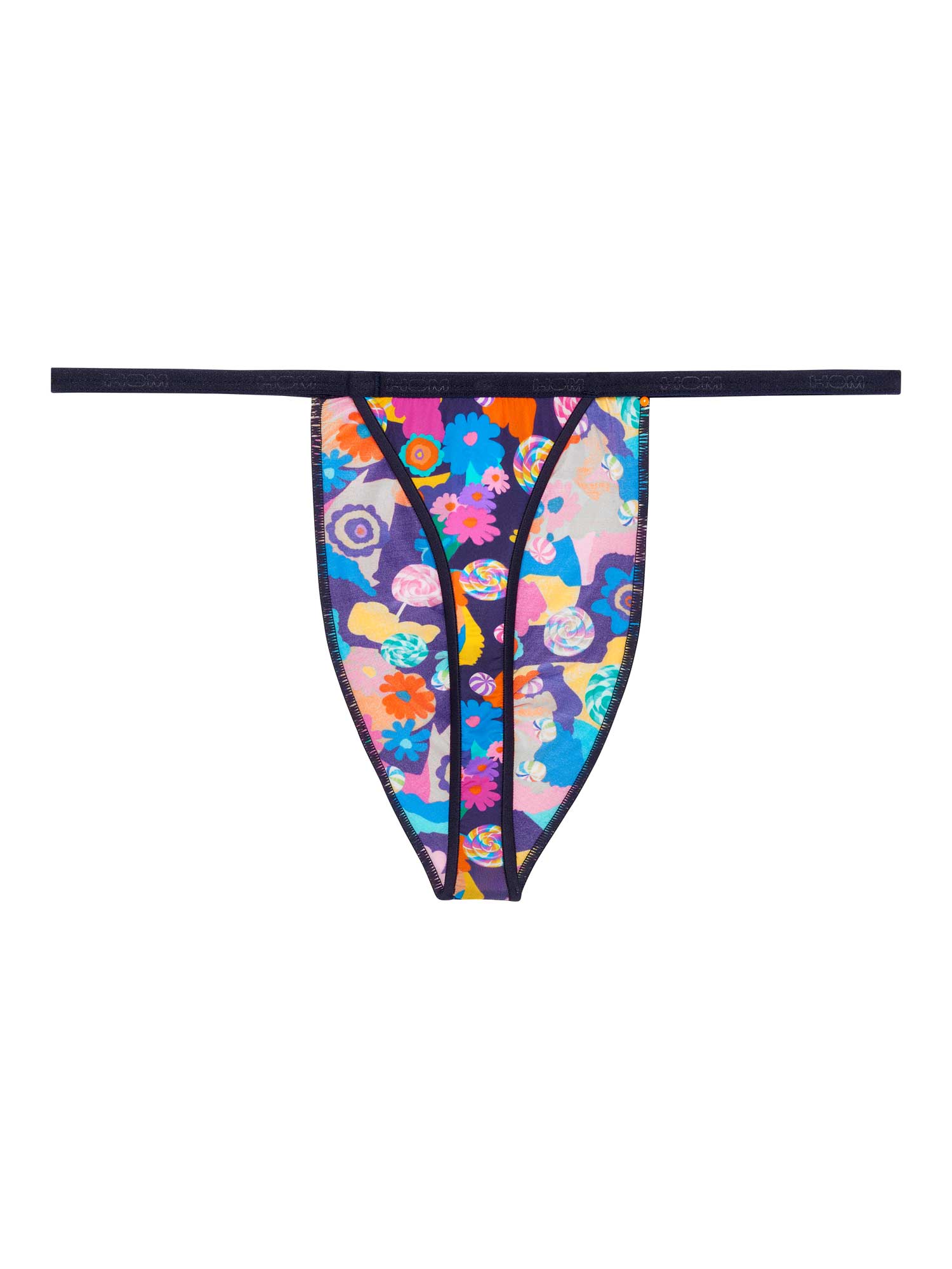El tanga Wonka de la colección HOM Temptation está diseñado para seducir con un toque juguetón. La microfibra ultraligera, idéntica a la de los modelos Plume de HOM, se ajusta al cuerpo como una segunda piel. El colorido estampado de caramelos y flores psicodélicas crea un look atrevido y llamativo. Un corte provocador para hombres que buscan cobertura mínima y máximo impacto.