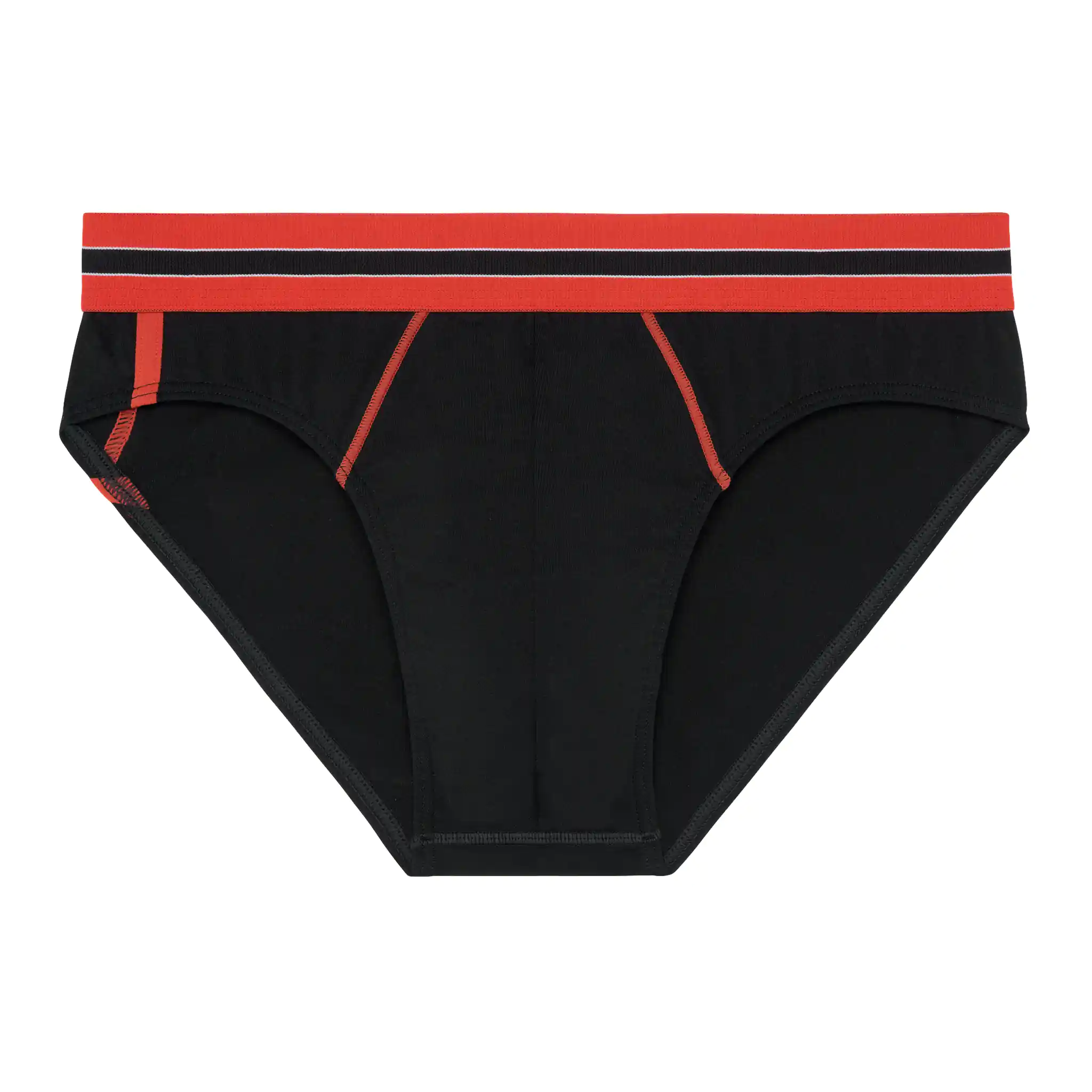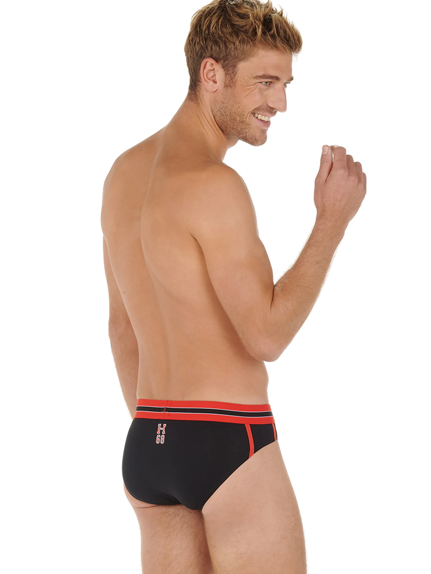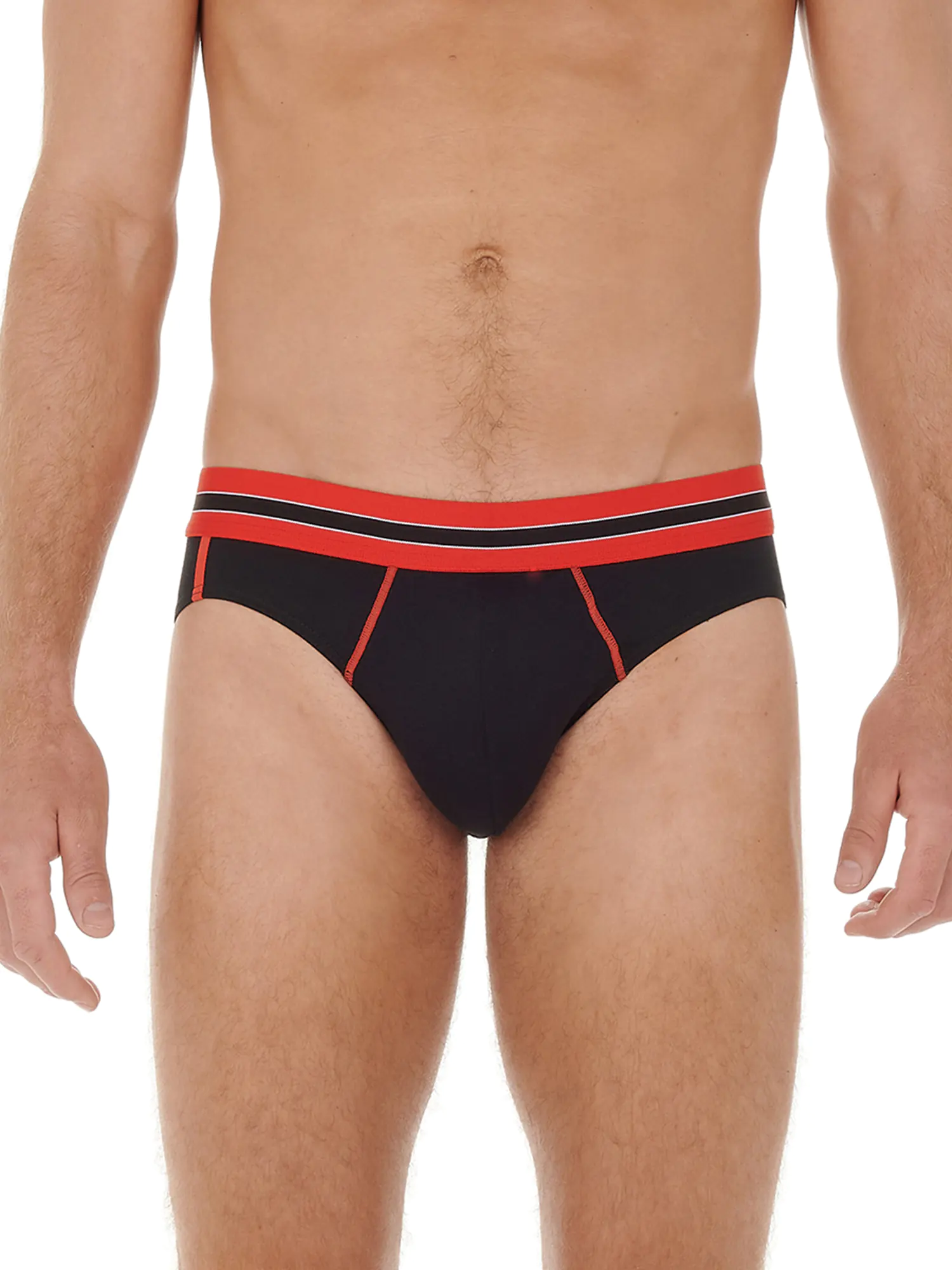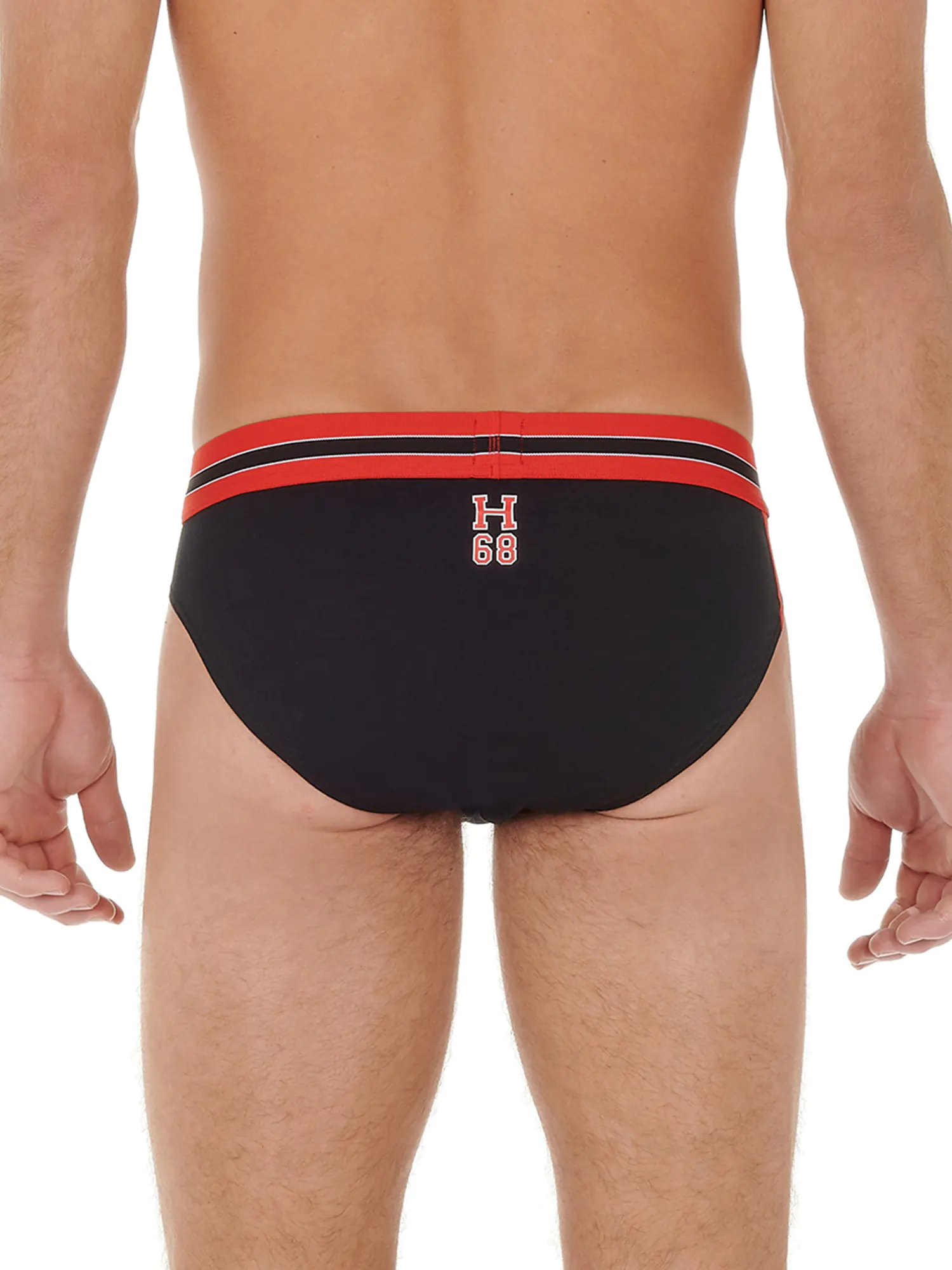 El HOMrun - Micro Brief es el slip deportivo para hombres de esta temporada, hecho de una nueva composición de tela de algodón que previene el crecimiento de bacterias para una mejor higiene. El HOMrun tiene un llamativo look retro en colores brillantes con líneas a lo largo de la bolsa, los lados y sobre la cintura elástica. El Tie Break es un slip para hombres diseñado para usarse en cualquier actividad. Un emblema de HOM está colocado en la parte trasera del slip.