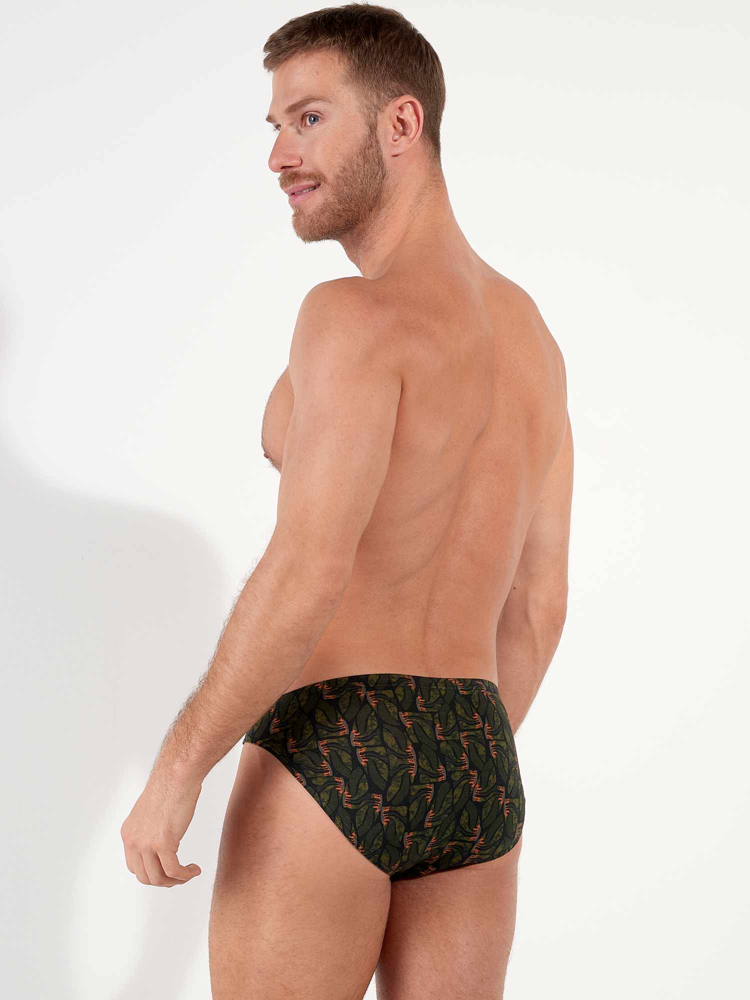 Los motivos vegetales en tonos caqui y naranja sobre fondo negro le dan a los Vizzavona – comfort micro briefs un aire moderno de camuflaje. El suave tejido de modal y algodón se adapta perfectamente al cuerpo, mientras que el acabado en las piernas y el refuerzo interior aportan libertad de movimiento y confort total.