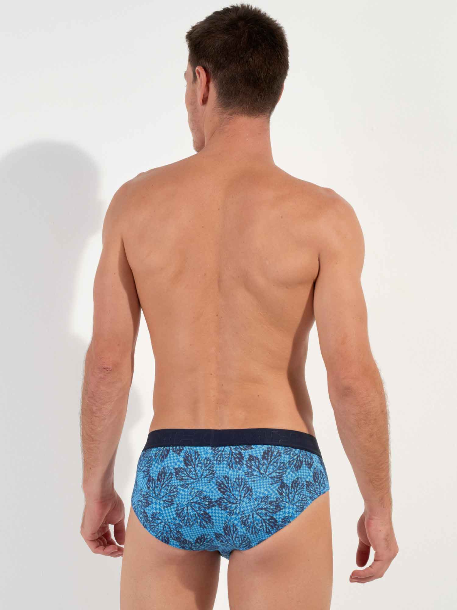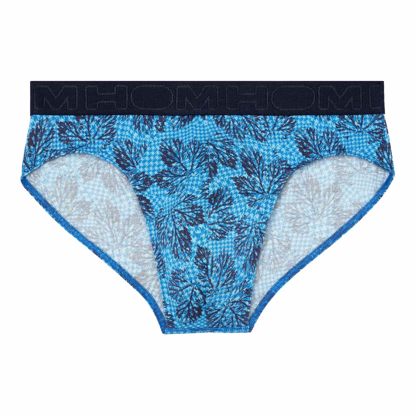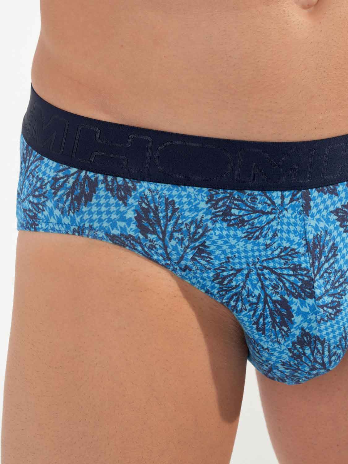 El Douro - Mini Brief está hecho de algodón-modal de alta calidad, lo que lo hace suave y cómodo contra la piel. Este slip para hombre presenta un llamativo estampado de vegetación en azul marino sobre un fondo azul claro. La cintura elástica está diseñada con el logotipo HOM alrededor en tono sobre tono.