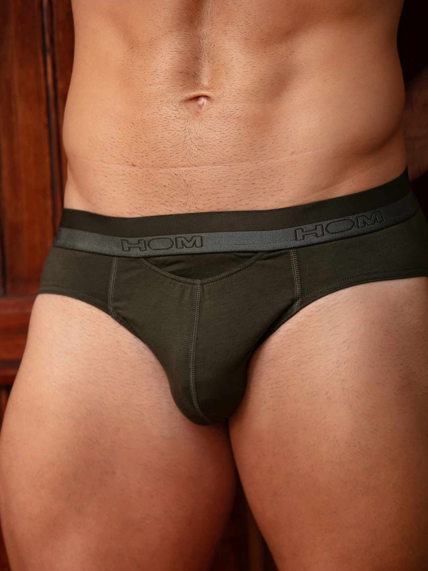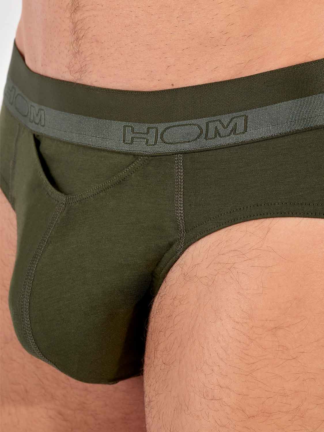 The HO1 Original - Mini Briefs ofrecen la mejor comodidad y mayor conveniencia de HOM. Estos briefs cuentan con la apertura horizontal (bragueta) y están hechos de una mezcla de modal y algodón para una sensación suave. El algodón modal respira bien y absorbe la humedad perfectamente gracias a la adición de modal. La tela es fácil de limpiar y altamente resistente al desgaste por fricción. La cintura mercerizada ofrece un efecto ligeramente brillante para una apariencia lujosa y presenta el logo de HOM en tono sobre tono.