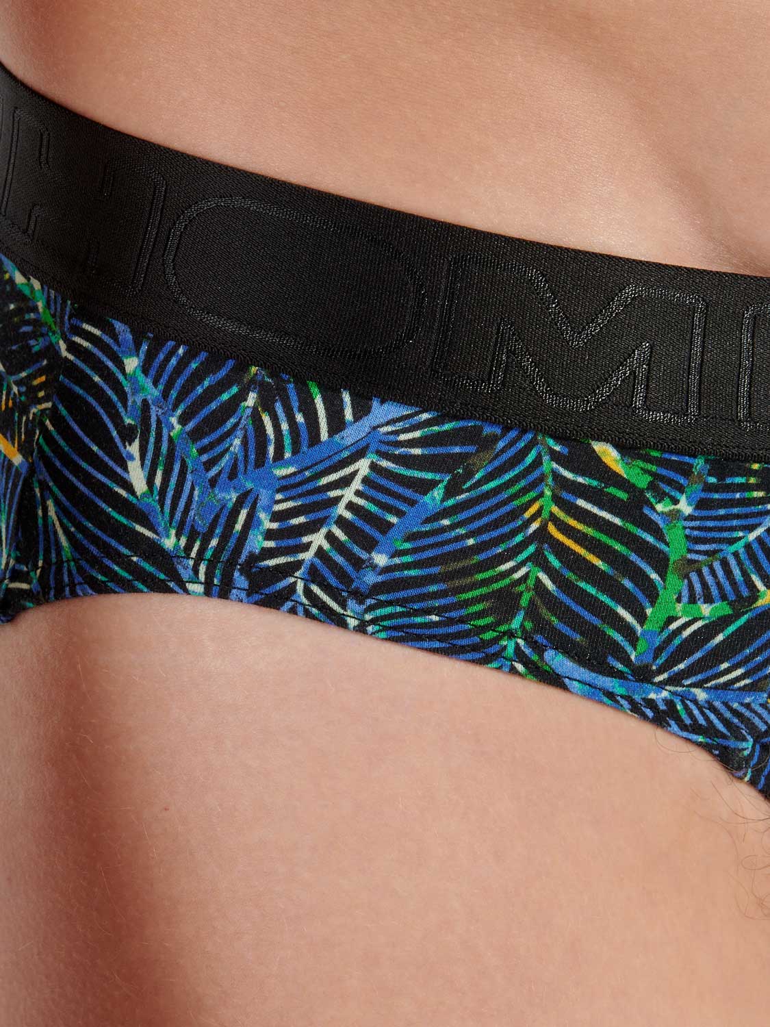 El Jarrod - Mini Brief está hecho de algodón-modal de alta calidad, lo que lo hace suave y cómodo en el cuerpo. Estos slips para hombre presentan un llamativo estampado de vegetación en colores brillantes sobre un fondo negro. La cintura elástica negra está diseñada con el logo de HOM en tono sobre tono.