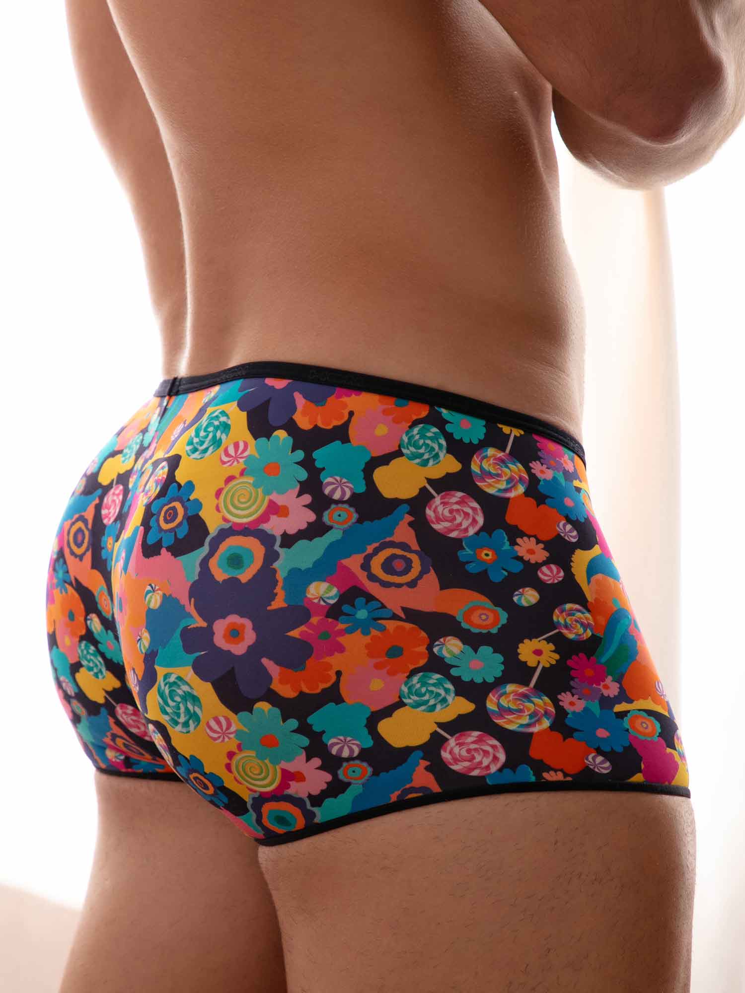 El Wonka trunk de la colección HOM Temptation no tiene nada de ordinario. Confeccionado en el emblemático tejido Plume de HOM, la microfibra ultraligera se adapta al cuerpo como una segunda piel y se mueve con fluidez. El estampado combina caramelos de colores con flores alucinantes para un look divertido pero seductor. Un modelo atrevido para el hombre seguro de sí mismo que marca sus propias reglas.