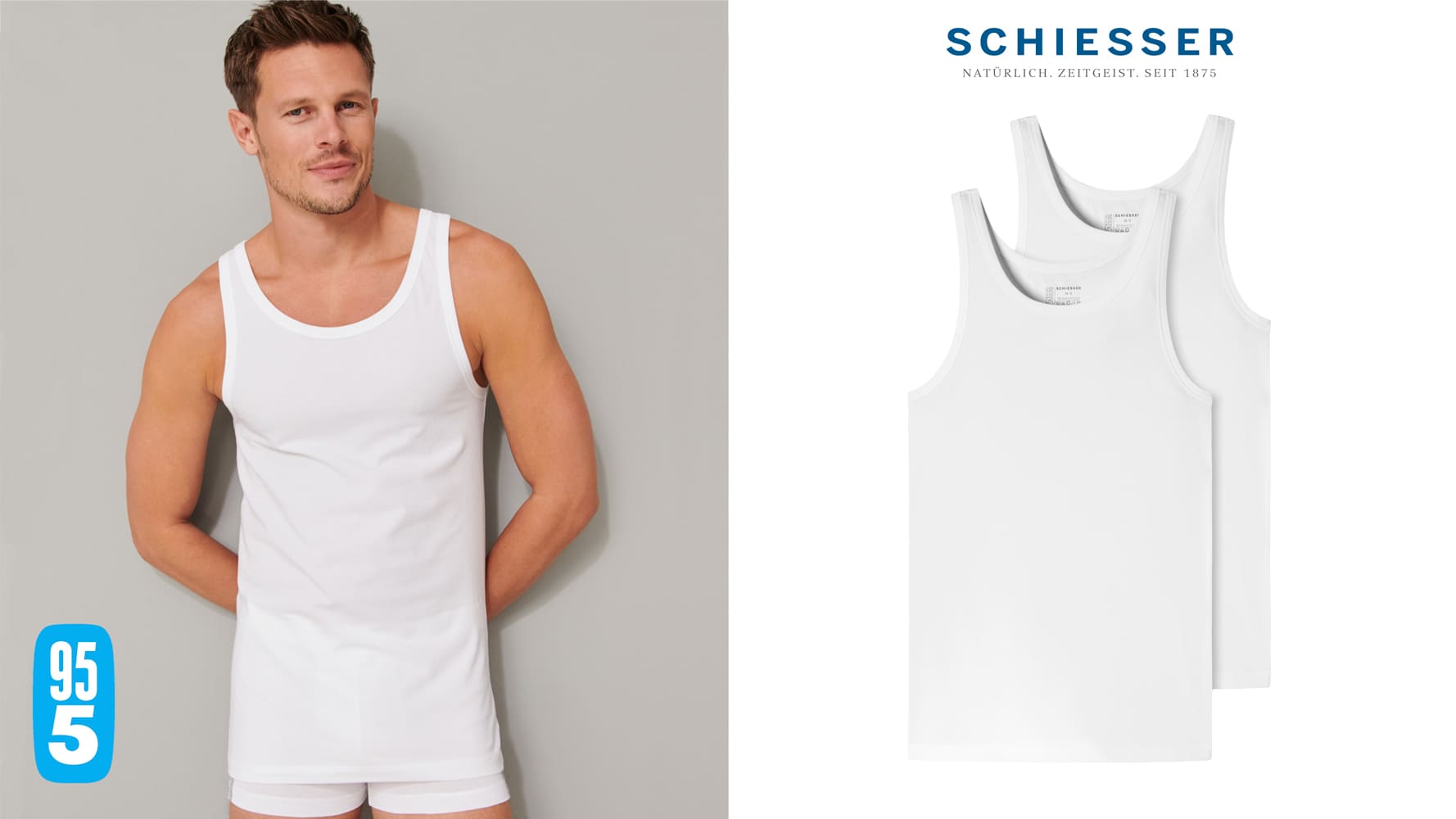 2 camisetas interiores de Schiesser de la serie 95-5 en un dúo pack. Fabricadas con algodón elástico orgánico 95-5 para una experiencia de uso cómoda y un ajuste que se adapta perfectamente a la piel. Incluso después de lavarlas a 60 grados, estas camisetas interiores permanecen hermosas y en perfectas condiciones, para que puedas disfrutarlas durante todo el día.