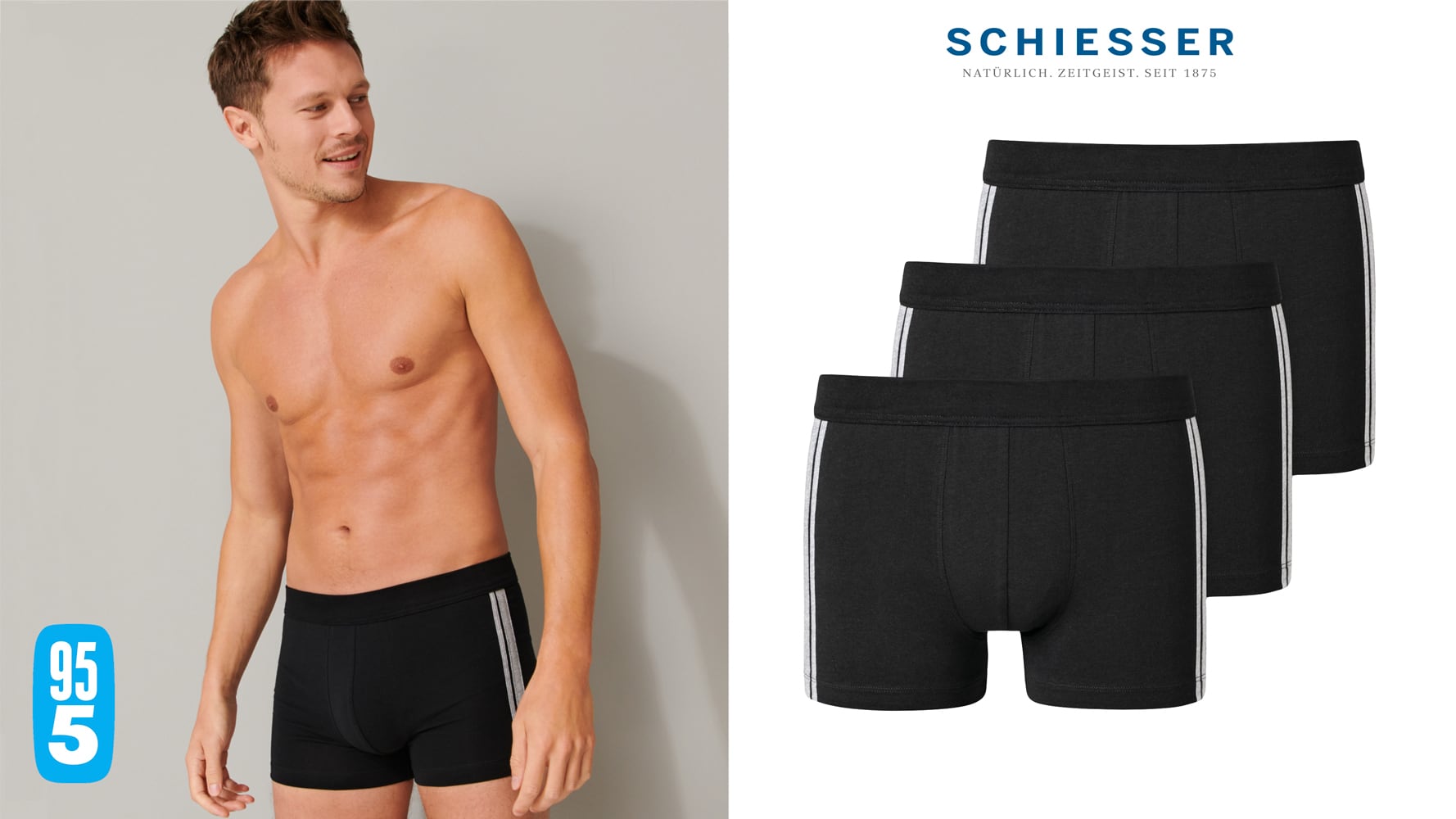 Estos shorts para hombre de SCHIESSER están disponibles en varios colores en un paquete de 3 unidades. Los shorts forman parte de la popular serie '95/5' y cuentan con una pretina suave del mismo color. Los shorts tienen rayas contrastantes en los costados para un look deportivo. La tela está hecha de algodón orgánico y está tejida en una camiseta simple elástica. Con este paquete de 3, obtienes 3 bóxers para hombre hechos con la calidad por la que SCHIESSER es conocido.
