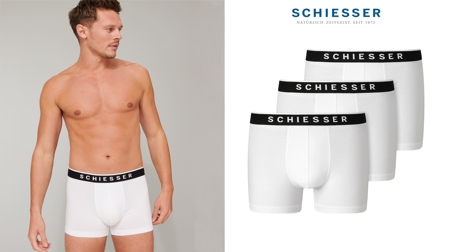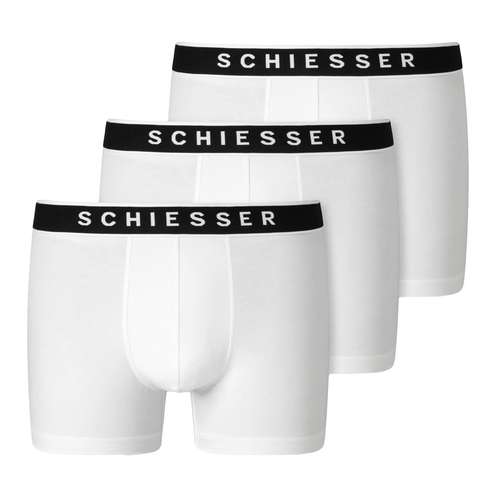 Paquete de 3 unidades de la popular serie 95/5 de Schiesser. Un bóxer ideal para el uso diario de cualquier hombre. Los bóxers cuentan con una cómoda cintura elástica tejida con un aspecto deportivo, gracias a un llamativo logo blanco y una línea de contraste a lo largo de la cintura. Están hechos de algodón orgánico suave producido en una calidad 95/5 para un ajuste perfecto. ¡3 bóxers para hombre a un gran precio hechos con la conocida calidad de SCHIESSER!