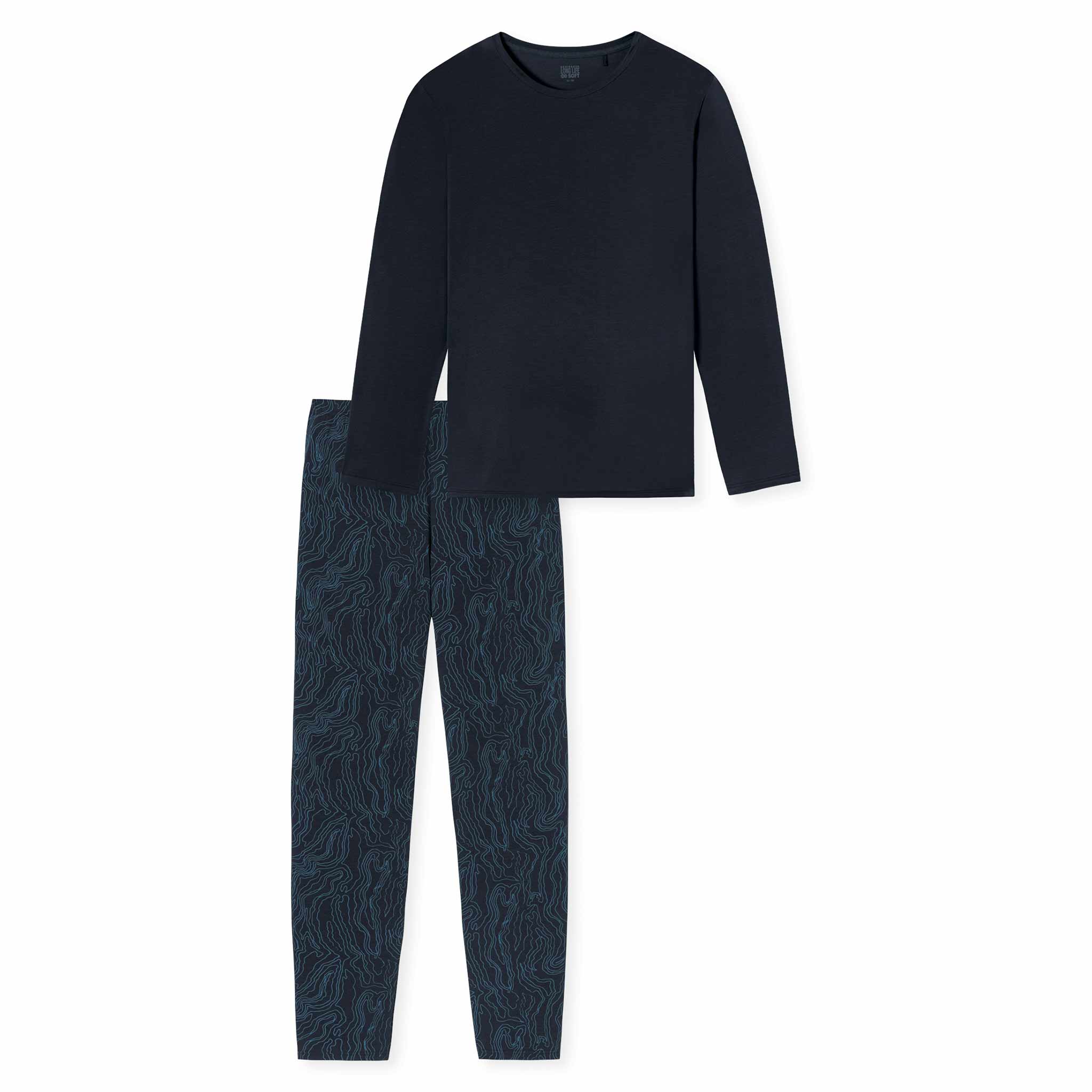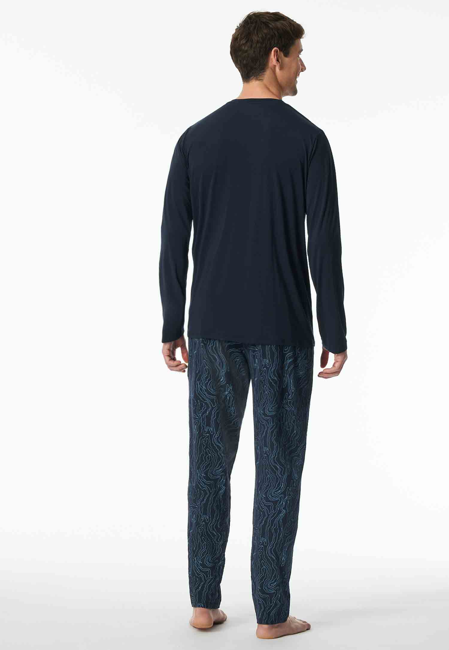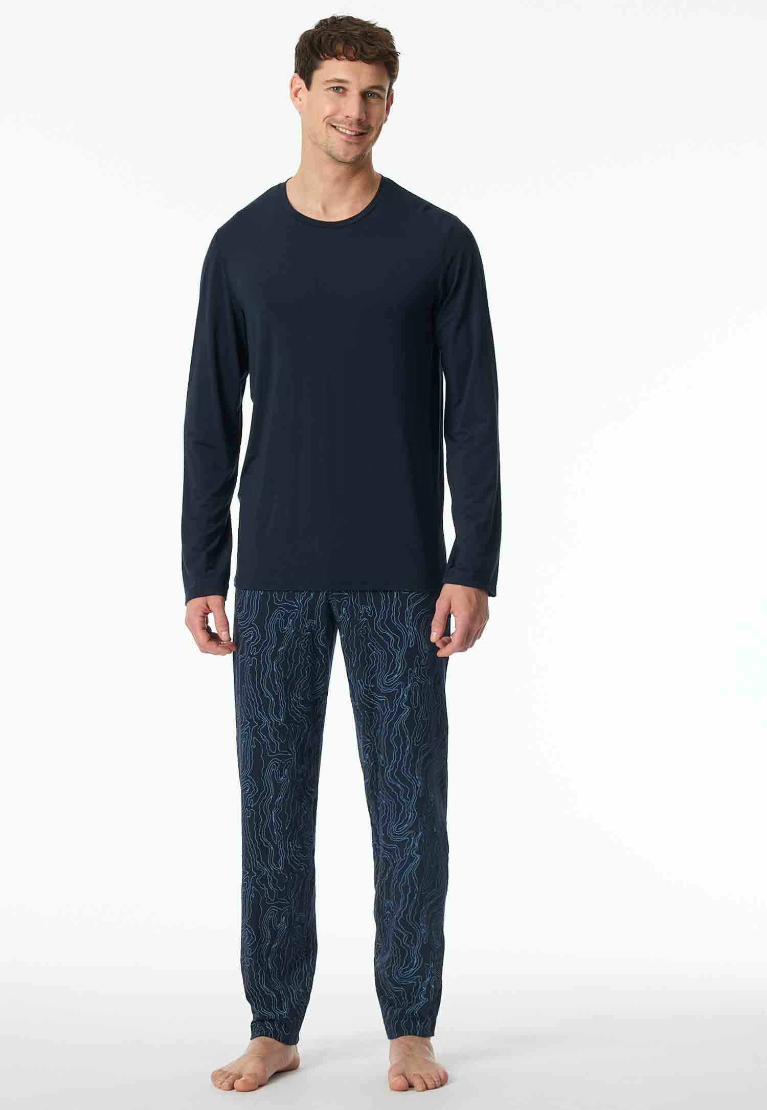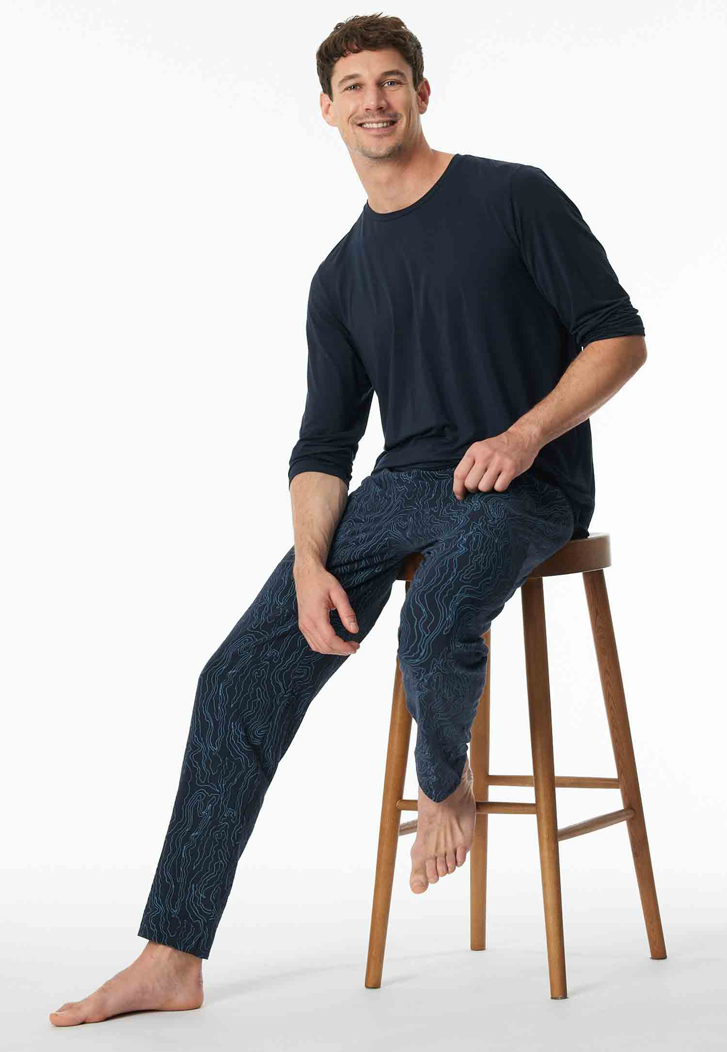 Pijama largo de la serie "Long Life Soft" de Schiesser. La serie Long Life Soft se caracteriza por la composición especial de la tela de modal, mezclada con un toque de poliéster, que proporciona esa sensación de suavidad en la piel. Gracias a la tecnología Long Life, se previene la formación de bolitas y los malos olores, asegurando que disfrutes de tu pijama por más tiempo. El pijama para hombres cuenta con una camiseta de cuello redondo y pantalones largos con cordón en la cintura. La tela está tejida en jersey. El pijama ideal de Schiesser que te durará mucho tiempo.