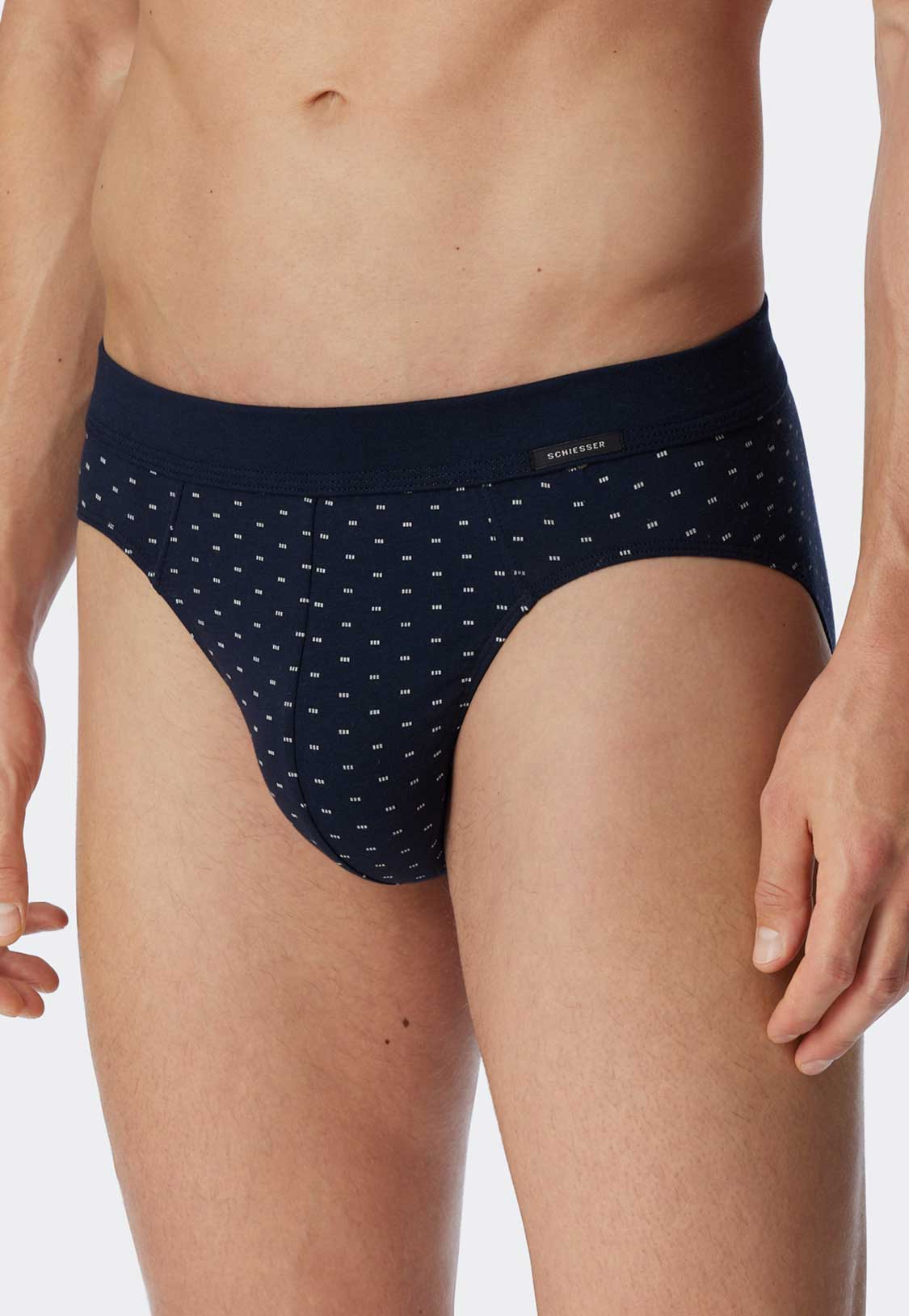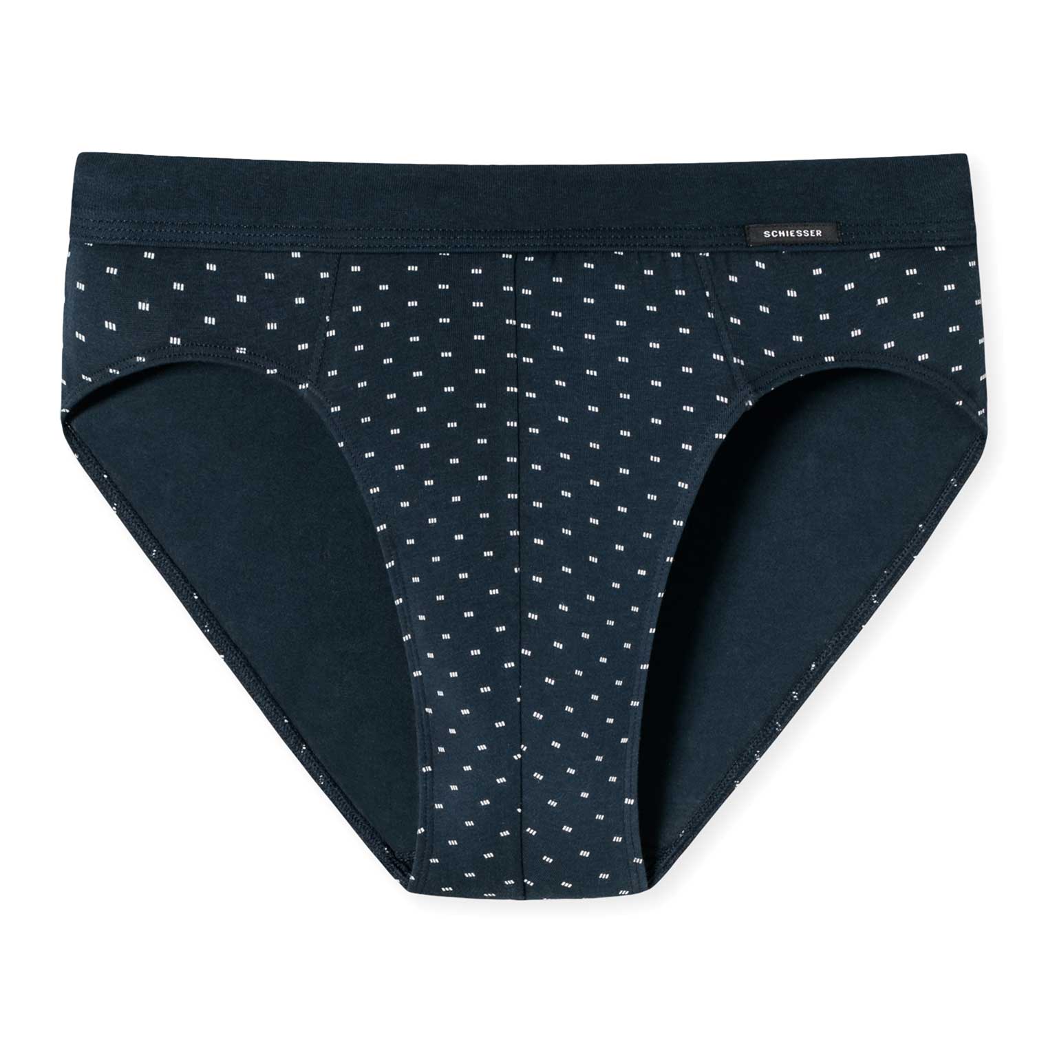 Este calzoncillo para hombre está hecho de algodón orgánico de la colección Daywear de Schiesser, disponible en un color negro-azul. El calzoncillo cuenta con un estampado de diseño gráfico. Dado que el calzoncillo está hecho de algodón, es fácil de limpiar y se siente agradablemente suave. Diseñado con una cintura ancha y una pequeña etiqueta con el logotipo de Schiesser.