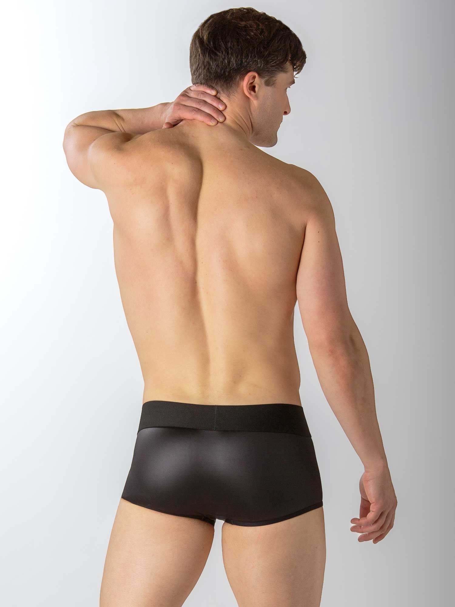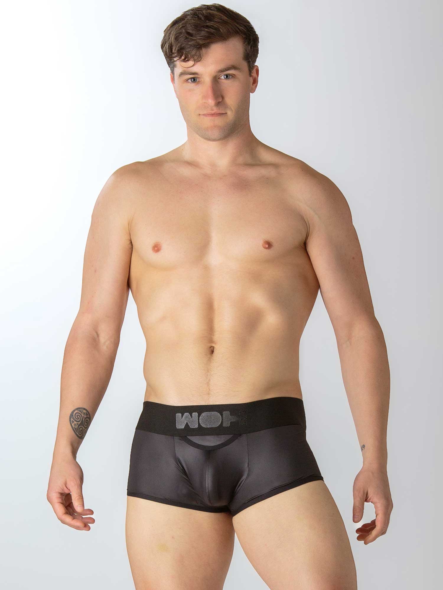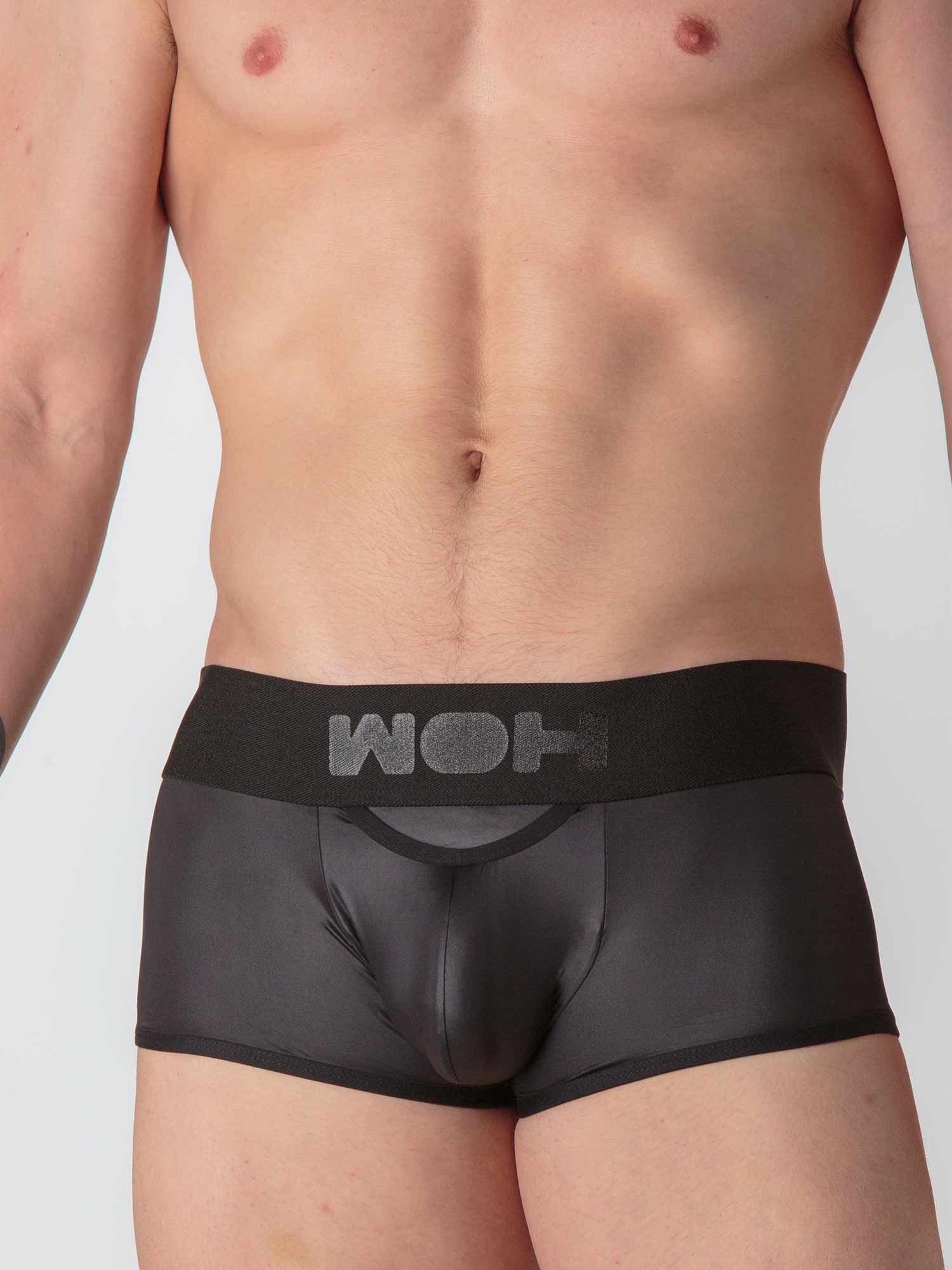 El Trunk Night Universe de WOH te lleva al mundo secreto y emocionante de la noche. Confeccionado en tejido de vinilo negro brillante con efecto cuero, este trunk transmite una estética audaz y dominante. La cinturilla ancha con el logo WOH en silicona refuerza su carácter imponente. Con un ajuste ceñido que resalta tu físico y cobertura total en la parte trasera, este diseño combina estilo con atractivo erótico.